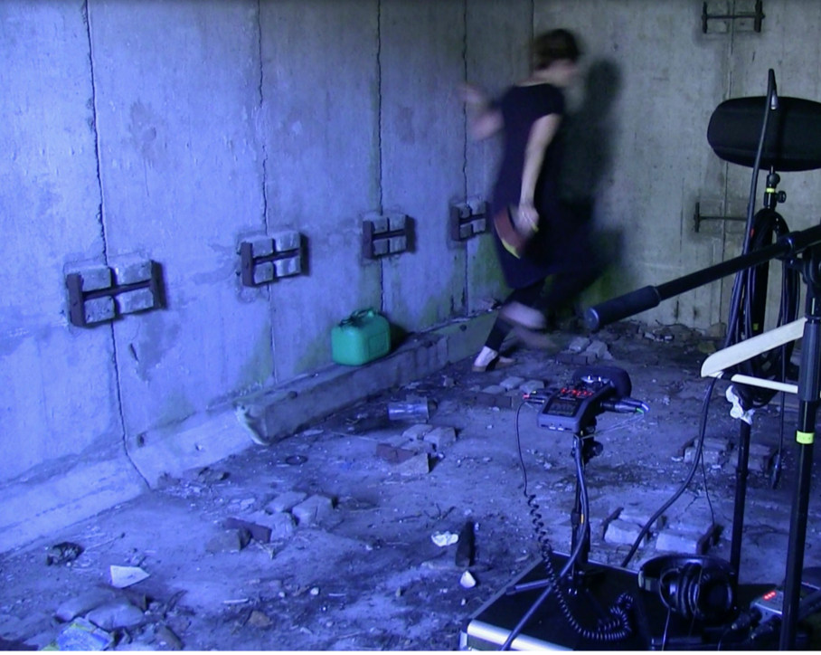 Halla: I am inside a gunpowder storage, moving in circular movements; performing the movements of wind and ocean currents in the North Atlantic. I am performing a topographical sonic mapping of this space, which stored dynamite used to blow up the 920 million year old granite on this site. I learned such a circular performance through Angela Rawlings and have memories of us performing in various environments. I start tentatively with a stone, at a walking pace, listening to its qualities, which are quite pleasant although a bit mucus like in its sound. The mucus effect is perhaps not what an outsider would think of when hearing it but the touch between the stone and the humid wall prompts a tactile feeling of a mucus like surface, which results in a dampened sound. There is almost just as much sound coming from my walking, as I step on the debris. After this initial attunement to the sound I go and pick up new tools and am ready for performance. I enter a circulation at a greater speed, with a larger stone in hand. It proves to be quite base-like. Next up is a found tool resembling a putty knife, and now things start happening as it wakes up the space and manages to draw out a broad spectrum of sound. My colleagues are listening, Stefan comments “that’s a good sound”, and at the same time Gunnar is reminded that he has sandpaper in his bag. After a round with a hairbrush, whose bamboo pins don’t bring about much ‘rapport’, I switch over to Gunnar’s sandpaper. It creates a friction that sends vibrations all up my arm and is threateningly deafening, but it is the right whirlpool of sound as it gets the space vibrating like never before. I become a bow and shoot through space, and cannot linger in my usual habit of standing and listening. It is hot, and I try not to stumble over the debris and in between performances I’m gasping for breath. (stimulated recall annotation, April 10, 2021)