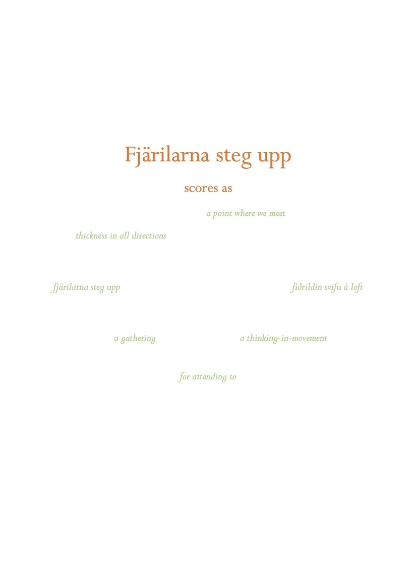 This section presents material from the curatorial practice which led to the creation of Fjärilarna steg upp [The butterflies ascended] (2020), an installation by Halla Steinunn Stefánsdóttir, created for the palm tree house at The Botanical Garden in Lund, Sweden, premiered in October, 2020. Fjärilarna steg upp draws on material collected in the Tapeshavet project, described in section B. This section outlines Stefánsdóttir’s curatorial practice, which resides within and bridges performative and compositional agency. As such the thinking-through-the-curatorial builds on attunement and phenomenological variation. The curatorial, in this project, manifests through various mediations, such as photographs, usage of playback technology in and out of the studio and in the creation of a performance score as well as in the final installation. The score was created building on analysis and stimulated recall of the site-respondent experiences within the Tapeshavet project. It also entailed attunement to the site designated for the installation. Furthermore, the score was created with three specific vocal artists in mind. The section includes excerpts from a stimulated recall with those artists, Sofia Härdig, Liv Kaastrup Vesterskov and Felicia Konrad, through which they unpack significant moments of their performances of the score. It provides an intersubjective perspective on the process, and as such reveals how performative listenings of responsivity can link to various biotic and abiotic entities, socio-material relations and sensorial attunement, including that of atmosphere. A second video (part 2) is shared to provide insight into memo taking, as well as the verbal inter-subjective exchange that took place during the session. In addition the exposition features a short ambisonic video, shot within the installation in October, 2020