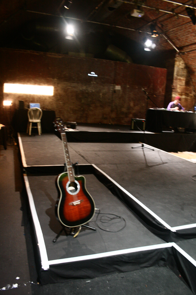 It is important to recognise that the modes of performance available to users were limited by the decisions that I had already made with the creative team and by the equipment that we had made available. For example, there were usually a number of performances with various musical accompaniment taking place simultaneously. This was due to the large number of amplifiers, microphones and instruments, and the provision of staging all over the studio rather than in just one location. If the stage area had been smaller and the equipment limited, it is likely that a very different performance style would have developed. Furthermore, as Claire Bishop points out, ‘every artwork - even the most “open-ended” - determines in advance the type of participation that the viewer may have within it’. [52] Apart from the occasional occurrence of rehearsed performance, such as the recital of poems or the performance of songs, the majority of uses of the stage and microphones was for impromptu, improvised performance.