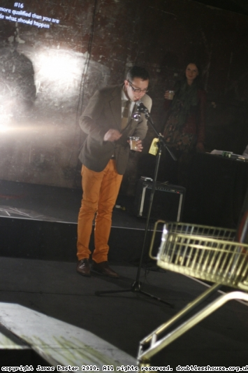 The Forest Fringe was started in 2006 by Debbie Pearson and Andy Field as an Edinburgh Festival venue presenting low-budget theatre for free as an alternative to the increasing ‘McDonaldisation’ of the Edinburgh Fringe. [47] An anti-commercial politics has always been at the heart of the company and this remains the case as the micro-festivals toured the UK throughout 2010. However, significantly, the company now receives funding from various sources including the Arts Council of England. Although the Forest Fringe continues to redefine itself and to question its place within the wider context of funding structures and commercial demands, the nominal entry fee to the event at the Arches perhaps suggests a contradictory system, in which a conventional supplier/client relationship remains in place despite the politics of the company. [48]
