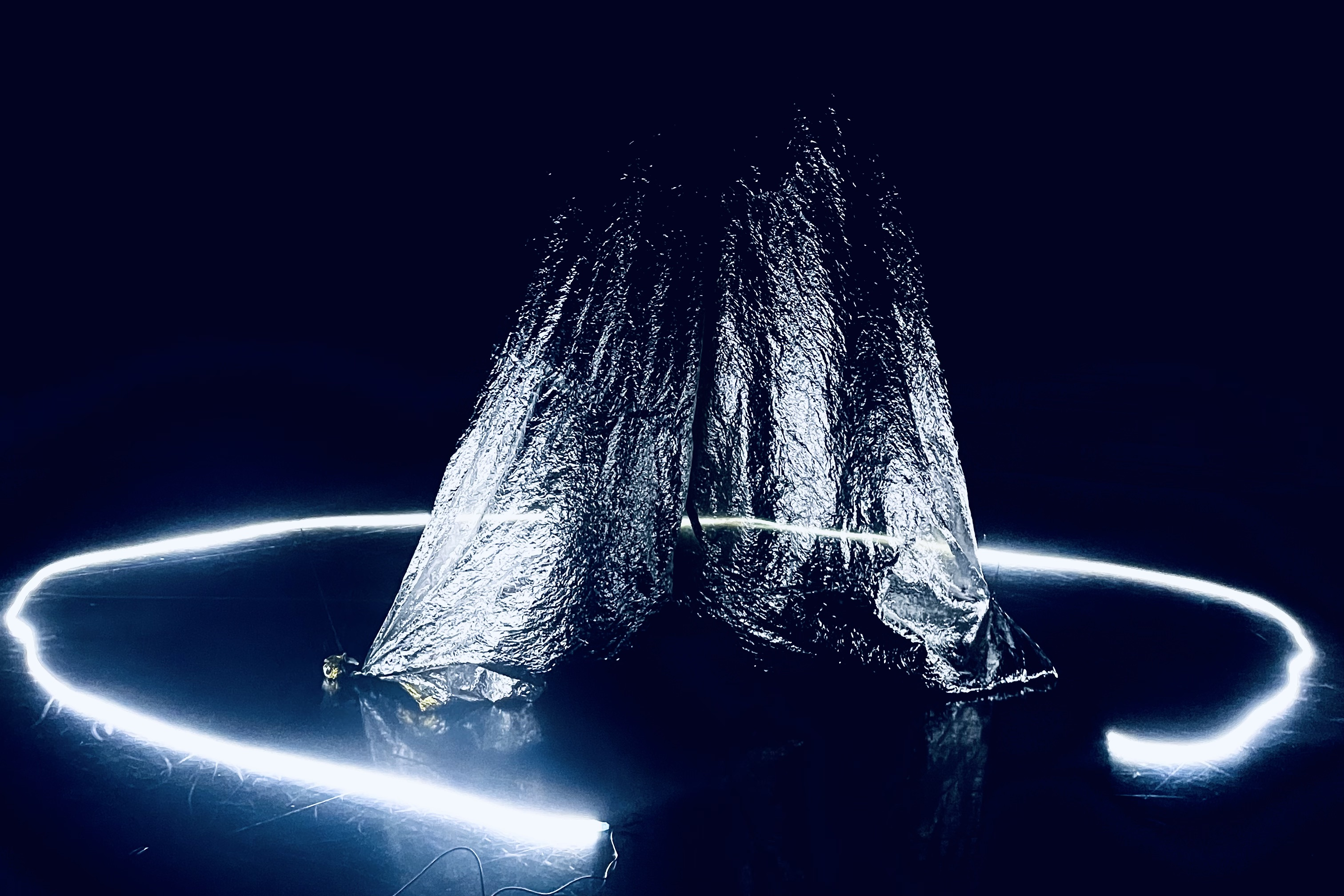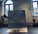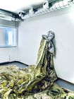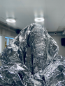 Througout the project, I purchased approximatively 100 pieces of foil manufactured as safety blanket. When working with large-scale pieces of foil, I had to patch them together. Since the patchwork required more human resources or time, I investigated if I could purchase larger rolls. I was in touch with people at the Swedish National Space Agency to identify potential suppliers and with people working in the spatial, food and first aid industries. I also investigated with manufacturers from Asia. In all cases, to order the material, one would need to buy it in huge quantities; thus, the firms did not sell to private persons, and any firm ordering would need to deal through trading agencies for permission to import.