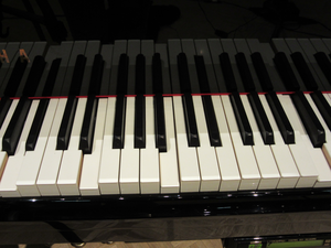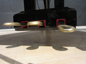 My first encounter with this instrument was in a concert for Yamaha Disklavier (and the Peter Ablinger automatic piano) at the Darmstadt Internationale Ferienkurse 2014. There I saw and heard a variety of uses for this automated instrument in combination with electronics, speaker feedback, harp pedals, etc. Intrigued by this memorable concert, I applied to an opportunity to work with the Disklavier owned by the Conlon Foundation in the Netherlands a couple of months later. After an introductory workshop on the basic mechanics, electronic connections, and example works by Robert van Heumen (Conlon Foundation board member), I was set free to begin exploring. At the time I had been transcribing the audio of the escalator recording into music notation, and thought that an automated instrument would be an ideal match. A Disklavier is a mechanical machine that plays and moves on its own, much like an escalator, and the piano keys have a visual resemblance to stairs. The foundation liked my idea and challenged me to compose the piece using its instrument. The transcription that I had made up to that point was mainly a rhythmic one, analyzing different layers, which I broke down into drone, ostinato, and pitched events such as OV-chipcards beeping. (These are the electronic check-in of the Dutch transportation system.) This recording also seemes to have a drone, although the layers are more rhythmic and semi-pitched than in Train. So this made it difficult to give to the ensemble of pitched instruments, and more applicable to the percussive Disklavier, which also creates mechanical sounds. Even more essential, the Disklavier offers an entertaining and meaningful visual layer that is very direct, so I explored this first. The opening Section A features pulsations of the left and right pedals on the beat (quarter and half notes). This highlights the groove of the escalator and creates mechanical pedal noises, squeaks and such. The next Section B features the addition of a silent ascent of the piano keys, like an escalator always traveling in one direction. The Disklavier can depress the keys without the hammer striking the strings; only small mechanical noises result. Thus, the audience can focus on hearing the field recording with a focus on the pulse. At this point the Disklavier visually translates what is happening in the recording and adds to the pulse in a blended way. Section B continues this combination with more waves of ascending keys and some OV-Chipcard noises, eventually having the piano sound. Over time, more and more scales fill the piano, and “random” or grouped notes begin to sound. Section C is the denouement – return to visuals only and as the tape fades out we hear solely the mechanics of the Disklavier.
