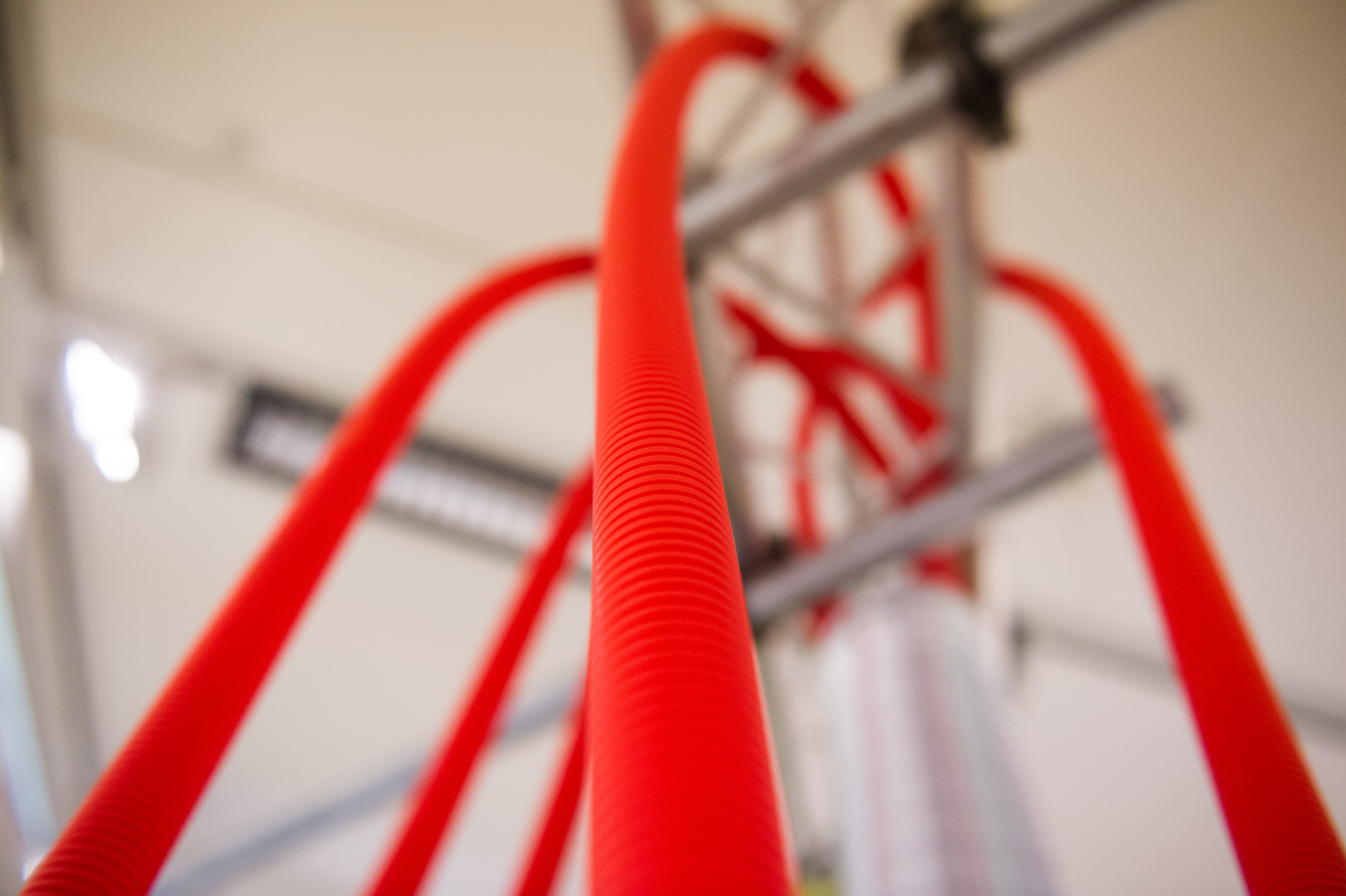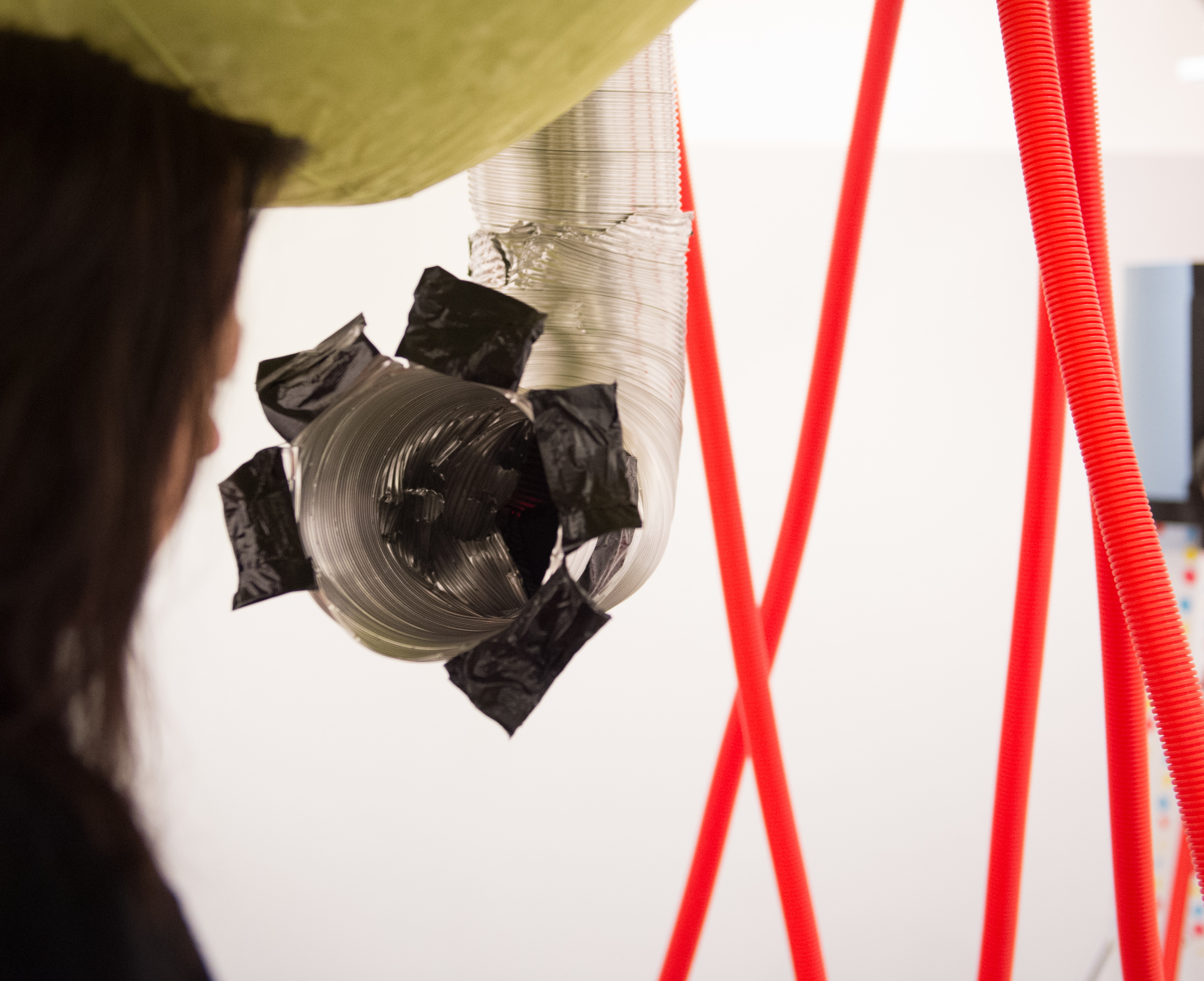 The hum grows and alters; it carves a shifting relational landscape between us, covering areas we can negotiate together without a pre-agreed trajectory to follow. It is ‘no longer a question of intercepting a sound and decoding or interpreting it, but rather of responding to a unique voice that signifies nothing but itself’ (Cavarero 2005: 7). We join together in sound, in what Philosopher Adriana Cavarero describes as ‘the maintenance of a relation that communicates no other meaning than the relation itself’ (ibid.: 195). There is no intention to communicate or to make sense. We are not only connected through sound but also via the red-ribbed plastic tube vibrating in our hands. We are a shifting sonorous landscape that puts us in common outside the voicing of language verging on ‘dangerously bodily, if not seductive or quasi-animal’ (ibid.: 13). A space for being opens, a space for vocal theatre that as soon as the mouth closes, is gone.