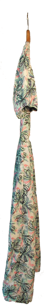 Basend on 1963-1964 patterns and scraps Rūta's mother knitted, sewn and embroidered. She worked as a ticket seller in a movie theater. Lived in Kaunas. She did most of her all small handicrafts in her workplace. She had time and space there.