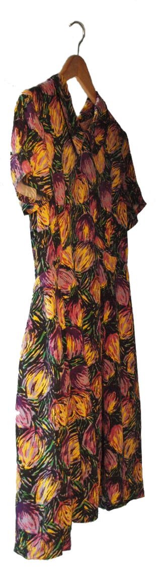 Dimensions: shoulder width - 42 cm, chest circumference - 96 cm, sleeve length - 56 cm (no buttons at the ends), waist circumference - 100 cm, total dress length - 105 cm.