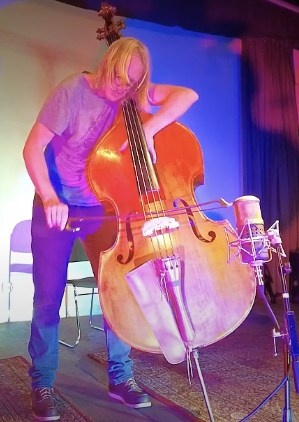 Can I, by reaching for the utmost limits on my instrument, in dynamically, technically and pitch related ways both find, for me, new contemporary techniques and expand the ways on how to play and perform them on the double bass? Can I, by illuminating, documenting, studying, organizing and re-documenting my musical process, design a toolkit for improvising bassists with contemporary techniques? Can I, in my musical process both act as the first person, i.e. the subjective musician and as the third person, i.e. the objective observer? If so, can I, as the observer objectively observe and organize the ”discoveries” that I am doing in my daily work as first person. Can I create this tool kit through the limitations that my instrument offers acoustically (the hand, the bow and the bass). And can I through this immerse and widen my musical expressions? - A richer language - more elastic - with more colors.