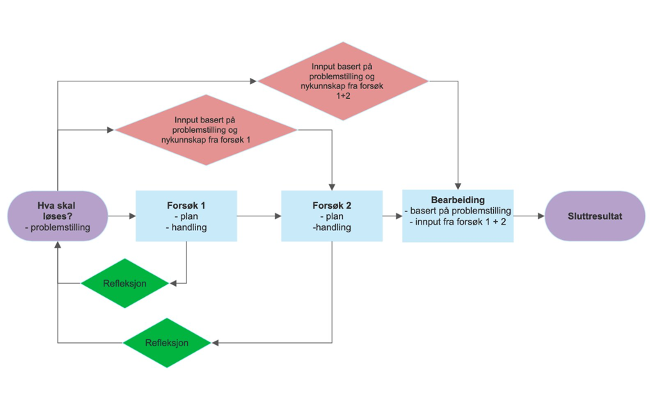 When searching the Internet for similar research models where tests solve and affect a problem, I encountered several similar models in the field of action research. Based on the model from this webpage (model), I created a new model that fits my research: