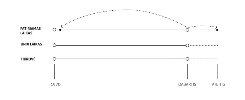 Skaitmeniniame pasaulyje laikas skaičiuojamas UNIX sistemoje, kuri prasidėjo 1970 m. sausio 1 d. 00:00:00. UNIX sistemoje laikas saugomas sekundėmis, pavyzdžiui, 2021-01-01 00:00:00 ir saugoma kaip 1609452000. Kadangi UNIX epocha prasidėjo 1970 m. sausio 1d., iš norimos datos atimamas šis laikas ir gaunamas skaičius sekundėmis. Vėliau šis skaičius yra konvertuojamas, formatuojamas ir atvaizduojamas žmonėms įprastu formatu. Šis laiko momentas nesikeičia nuo to, kurioje vietoje yra žmogus, taigi, yra stabilus ir tinkamas naudojimui visose kompiuterinėse sistemose.