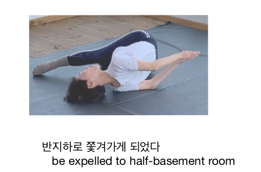 울었다( cried) 화장대 오른쪽 ( the right of the dressing table) 옆 담장에 (on the side fence)