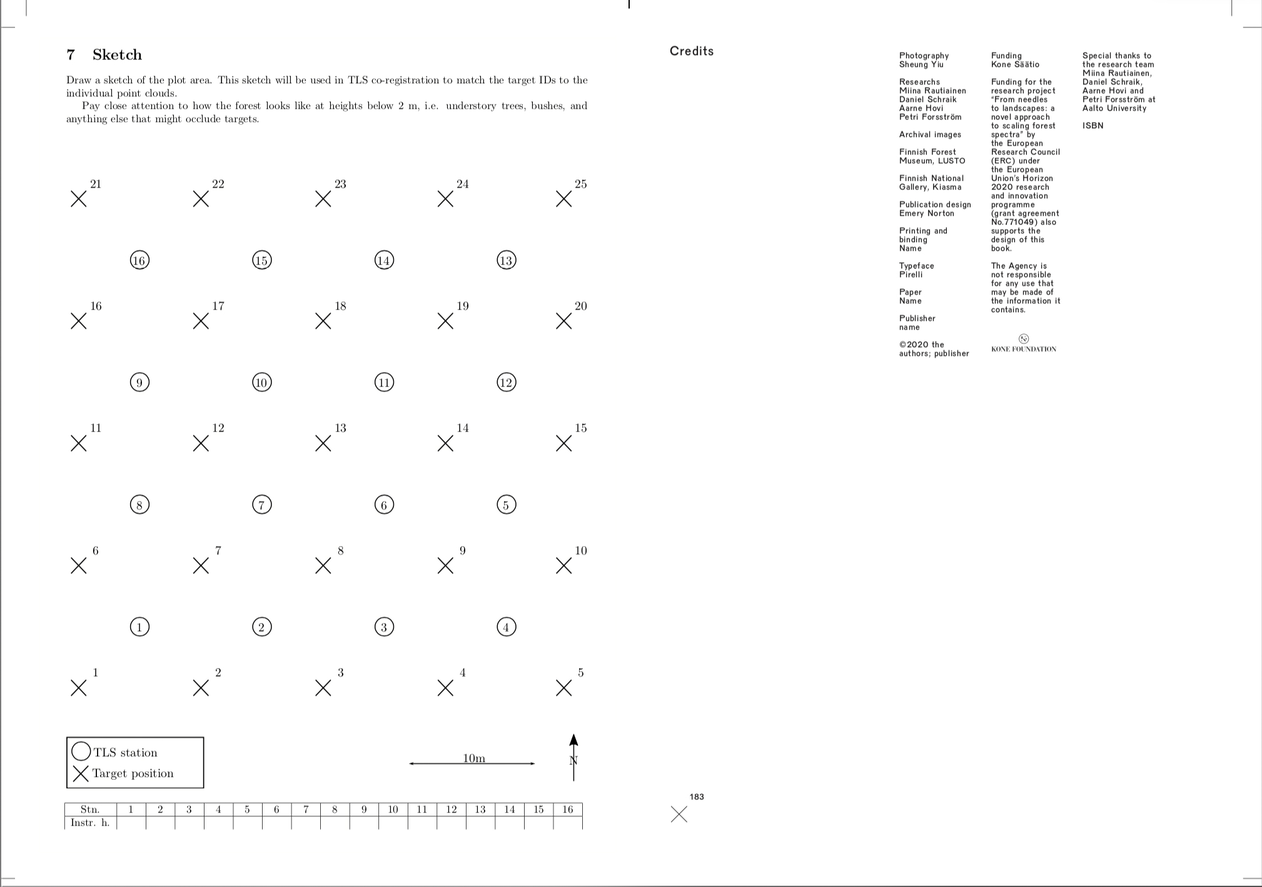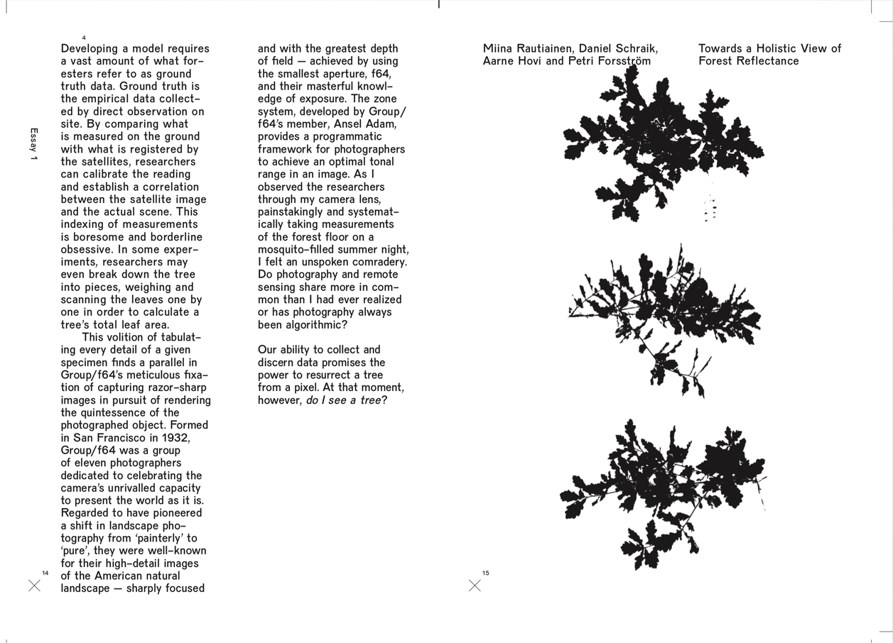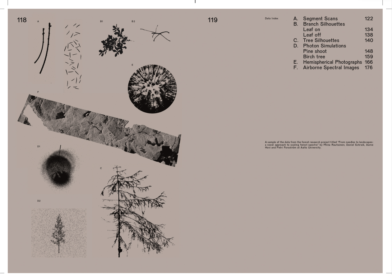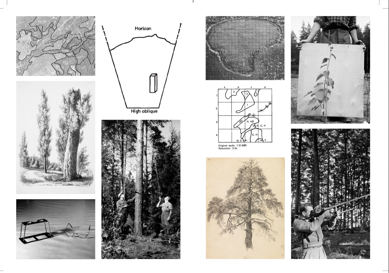 All images besides the author’s own artwork are derived from two sources. Some are archival images from the Finnish Forest Museum acquired by the author. Other images are part of the dataset generously shared by a remote sensing research group based at Aalto University (‘From needles to landscapes: a novel approach to scaling forest spectra’). This data is licensed according to the open science principle and under the Creative Commons license CC-BY 4.0.