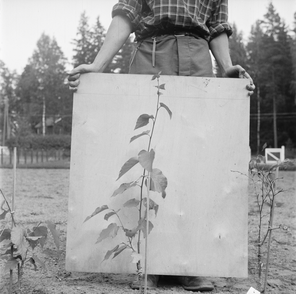 The machine he is using to capture the forest does not have the fast shutter of a camera. This may not be a fair comparison, of course; the two apparatuses operate on entirely different mechanisms.