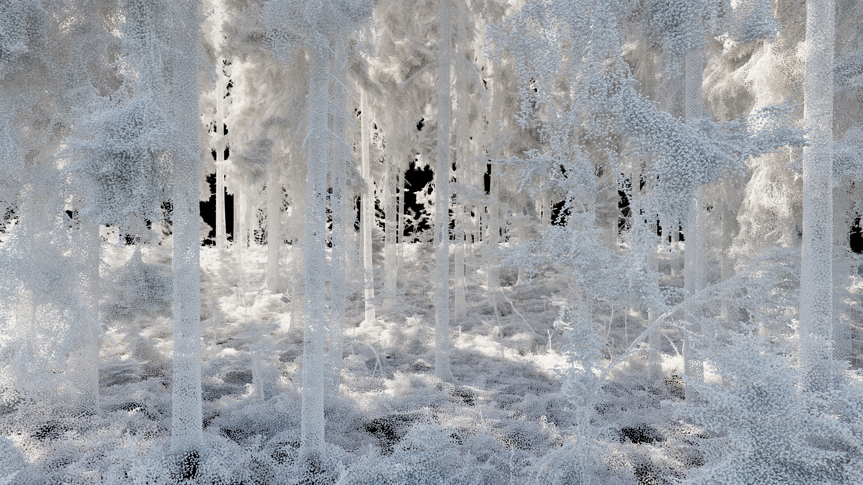 Each scan takes a couple of minutes to complete, so it is crucial that the forest is at a standstill; otherwise, the point cloud would be recording the movement rather than the space. The slightest movement creates a ‘smudge’ in the image: noise in the data.