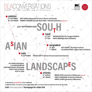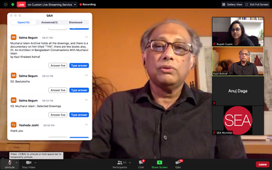 SEA City, a Fortnightly lecture series, which were a local affair at the school, open to public has a small budget that invited mostly scholars and practitioners from Mumbai and a few from the country, The event was attended by people from the city but many were deterred by traffic jams in Mumbai and the audience had slowly started petering off. Recently before the pandemic we had started relaying the event live on Facebook. This saw a few more people. But the audience never exceeded 20 - 25 people from outside the school. With the pandemic and the complete semester going online, we started a new series on South Asian Architecture and Urbanism hoping to challenge the narrow parochial nationalistic boundaries around which architectural discourse tends to revolve through questions around ‘identity’. In the frame is Kazi Ashraf an architect and theorist from the Bengal Institute and a chat by an audience member Salma Begum, informing the audience of an online archive the the work of Mazhrul Islam