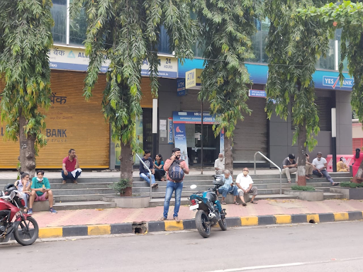 Road construction of one lane stopped due to lockdown and so this half-built road became a new marketplace for local vendors and temporary shops. Forming plaza-like spaces bounded by road’s divider and small shops.