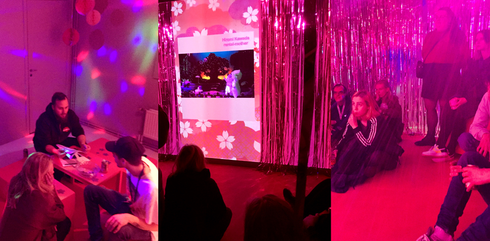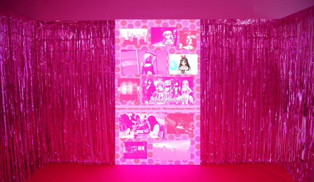 Three-dimensional life is the complicated physical reality where we work, miss the bus, get sick, are let down, feel unseen and become depressed. Two-dimensional life is the exciting, beautiful, dramatic, entertaining and flat world of pictures, TV series and computer games. Where everything is much easier, and where we choose to spend more and more of our time. What happens when the boundaries between the two-dimensional and the three-dimensional worlds are blurred? When everyone uses filters to look better and only post about their successes but no setbacks? When you can marry your beloved anime character in a VR game? When you can rent a partner who is always happy? The research project ‘Life in 2.5 dimensions’ is a reflection on how the increased degree of representation and performativity professionally and socially is related to the development of global experience capitalism, and how an escalating consumption of games and social media affect our relationships and emotions. In animated and documentary videos, we get to know a type of Japanese workers called ”sakura”, which means "fake customer". These are people who work with renting out their emotions. They support themselves by acting as family members, partners, dates, or friends in physical reality. The work analyzes a societal situation in post-industrial economies where community and belonging can be purchased in the form of performative, aesthetic and emotional service work.