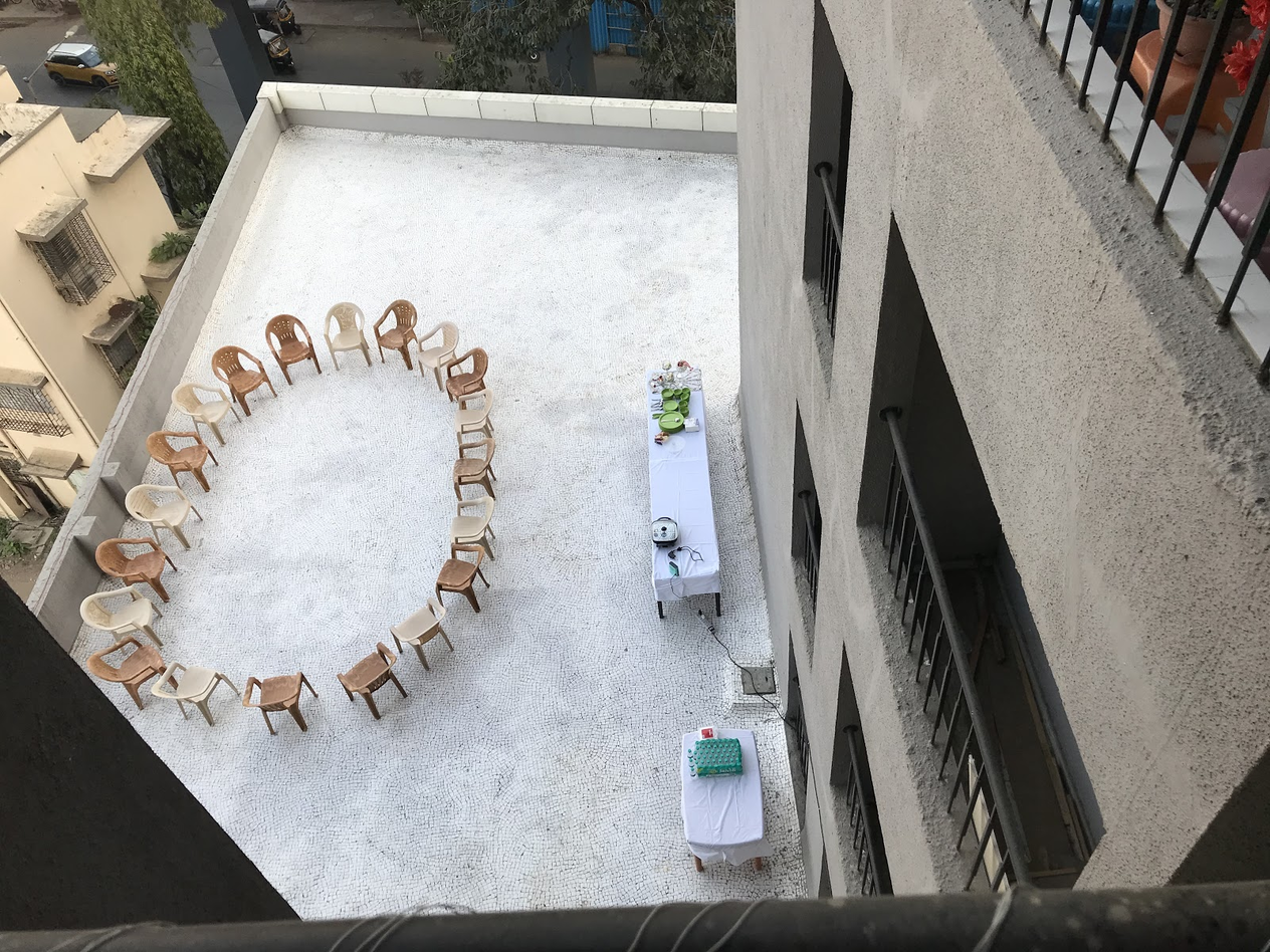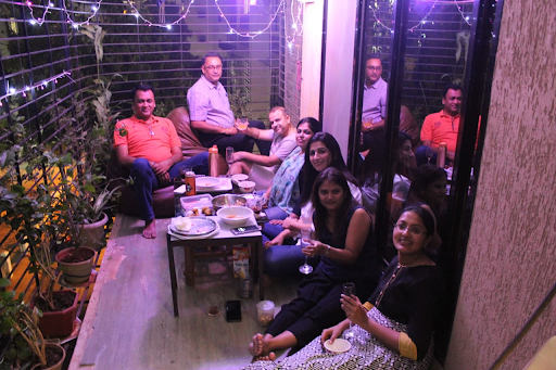 But my father came up with the idea of bringing out a club-like, party hub kind of space in our long and spacious balcony. We did set up led lights and speakers in the balcony, the aura became superior after we set up bean bags and a serving table in this space.
