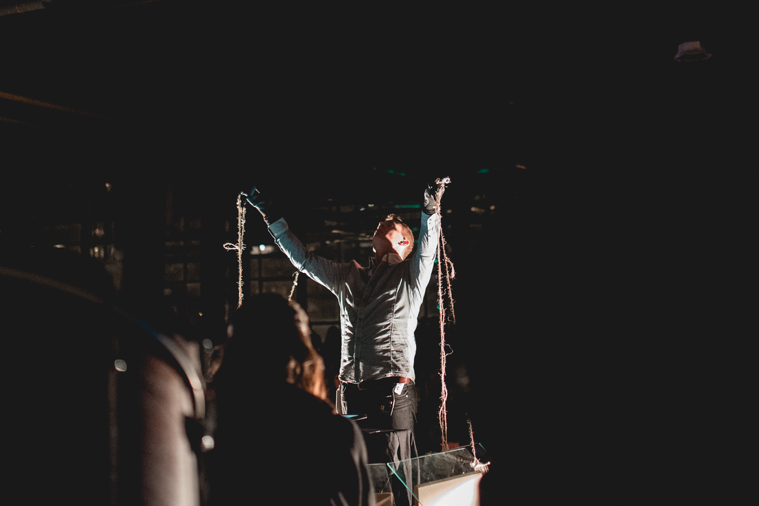 This corporeal program ignites with the strike of a match by the conductor-apparent. As the silent hall returns to its initial darkness, Verstockt’s DRIE surrounds the audience. The match, providing the basic human need of fiery light also serves as a visual passage of time. The conductor, striking and blowing out each match serves as time’s keeper.