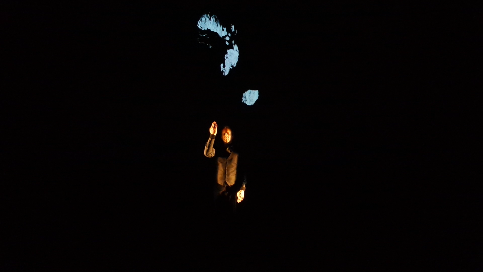 The solo-conductor in Light Music must perform five sub-roles that all represent both abstract and concrete forms of manual communication. De Mey found new ways to deploy these forms in virtuosic manners. As the performer, I learned that I needed to become very comfortable with the timed sequences to be perfectly synchronized with the recordings. I also had to learn, interpret, and internalize De Mey’s choreographic notation. And finally, though it is a solo work, performances of Light Music are a cooperative effort between the technician and the soloist. A certain level of mutual trust was required to allow for our impromptu performances.