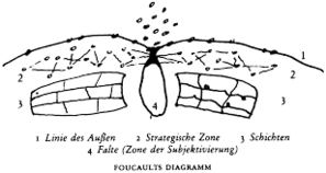 In Foucault's work, this interval, which relates what is visible and what can be said to one another, i.e. thinking from the outside, occurs because the rift between image and language leads to the non-layered nature of the diagram. (See Fou, 121). This relationship of the stratified and non-stratified formations is constantly changing their relationship, which is expressed by this gap that is expanding.