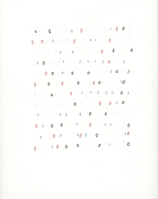 I am “reading” against cognitive logic, working visually instead of intellectually. And then my lines constitute a visual intervention.