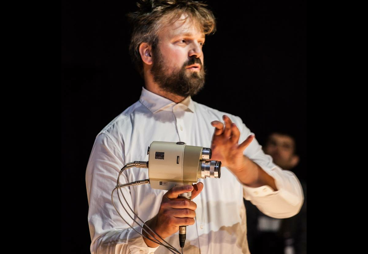 As mentioned, during the first workshop we established a set of technical configurations regarding microphone placements and usage; in addition, we built prototypes for the Looping Camera and the jacket with the contact microphone in the lining. This established a backbone for the rest of the work for the performance. In this latter part of the development phase, showing parts of the performance for a test audience with a subsequent artist talk was important. Through such informal conversations with test audiences, we invited them, often without much prior explanation of what we wanted to explore, to come with their interpretation of what they saw. This gave us a very unfiltered and subjective response on our performance, unbiased by much of the more theoretical foundations me and the dancers constructed during our workshop. Some of this feedback furthered development of our performance in very specific directions.