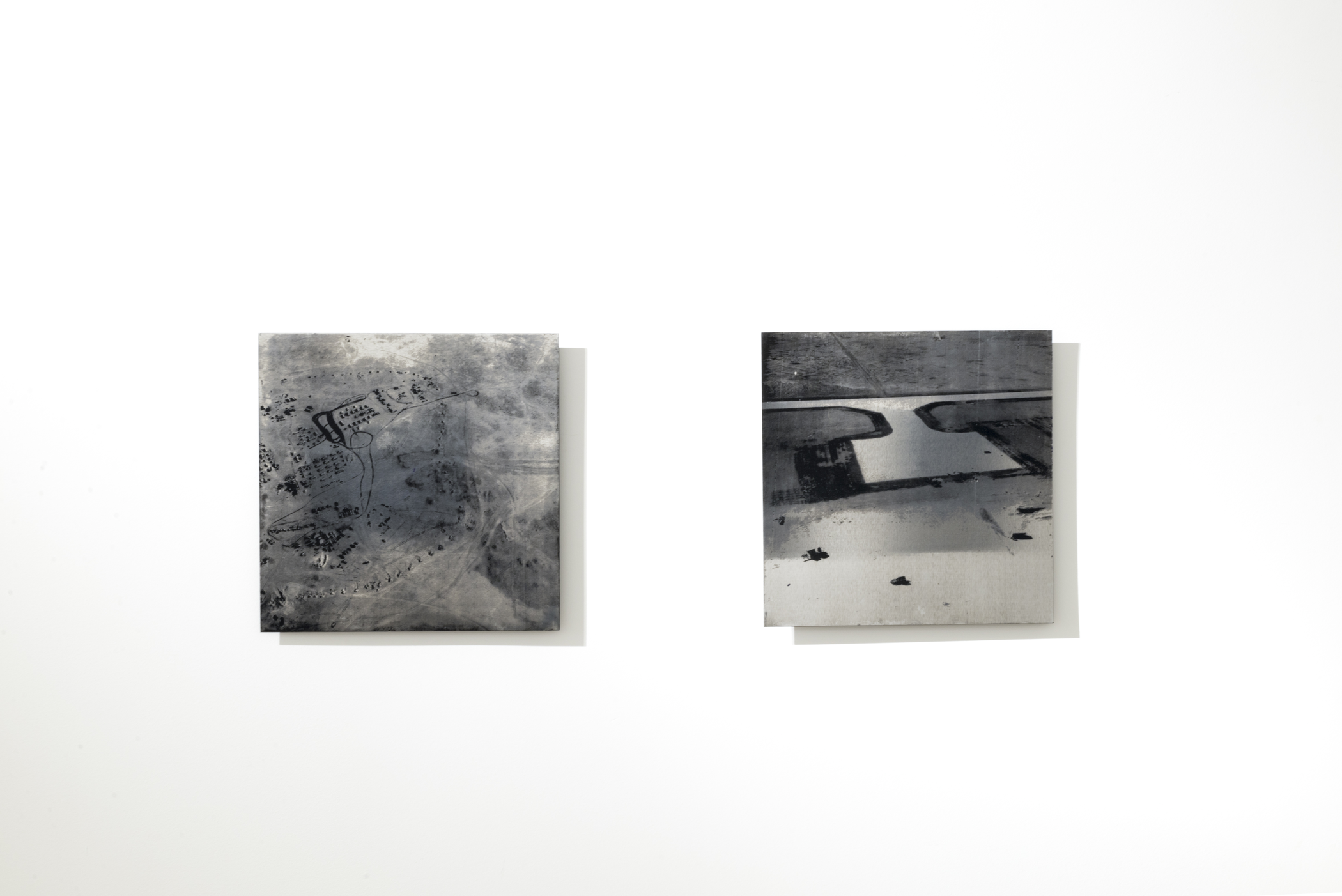 The project “Reconnaissance” was developed according to several photographic method, from large format camera, to digitalization or image transfers on glass plates. I produced a part of my project on spectroscopic glass plates, which are originally used to photograph the sky. I made picture transfers of my personal archives on it, adapting the photographic development process by accomplishing everything by hands, using emulsion applied on the glass (series of 26). Another part of my search leads me to use a specific visual protocol used by the army during the First World War, the “before and after” principle. For that, I crossed my work with recent satellite imagery of the Gulf region on Google Earth program, in order to create a great cartography of Iraq and Kuwait in the last years and composed by a series of 88 images, while creating my own archives from these territories.