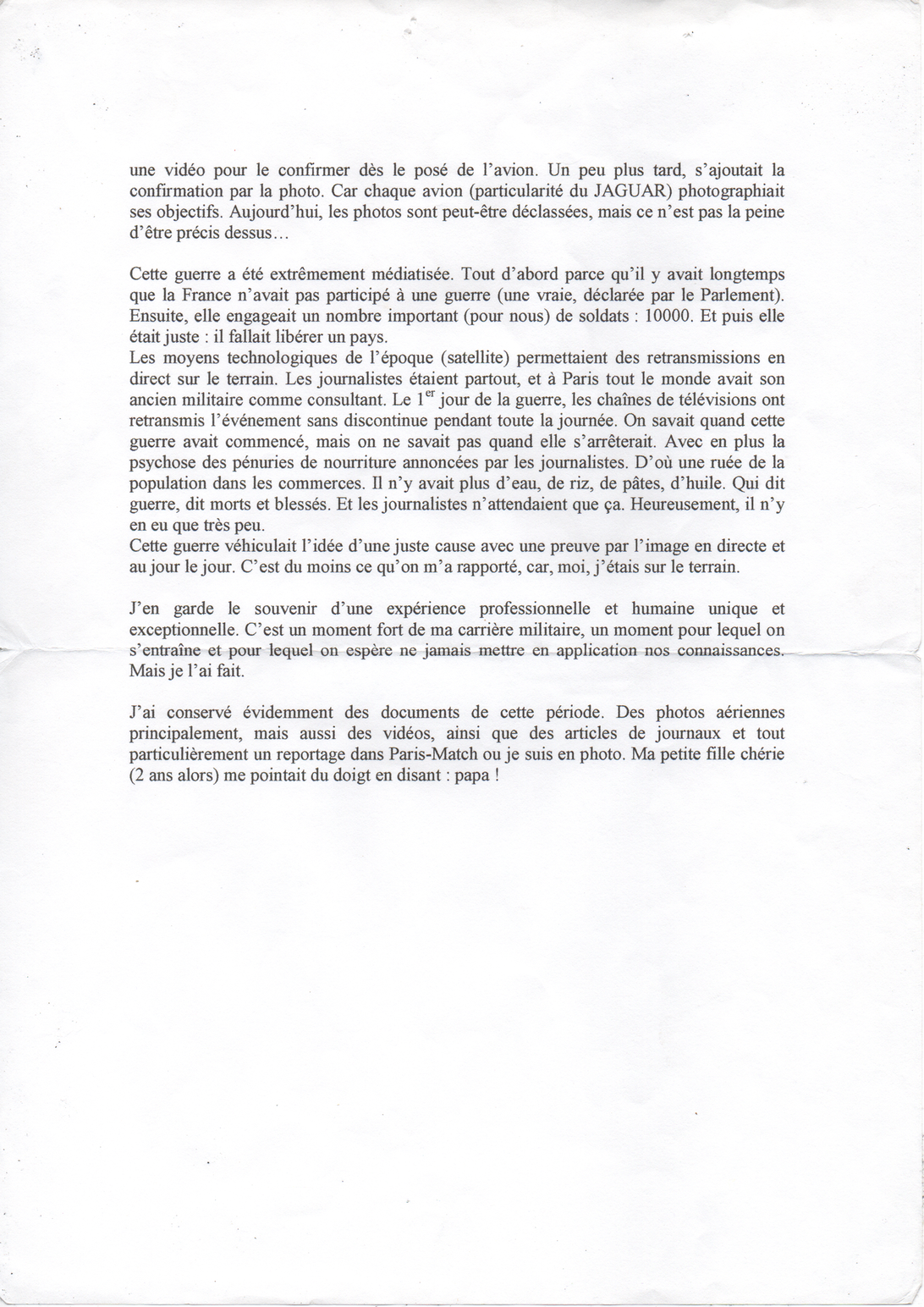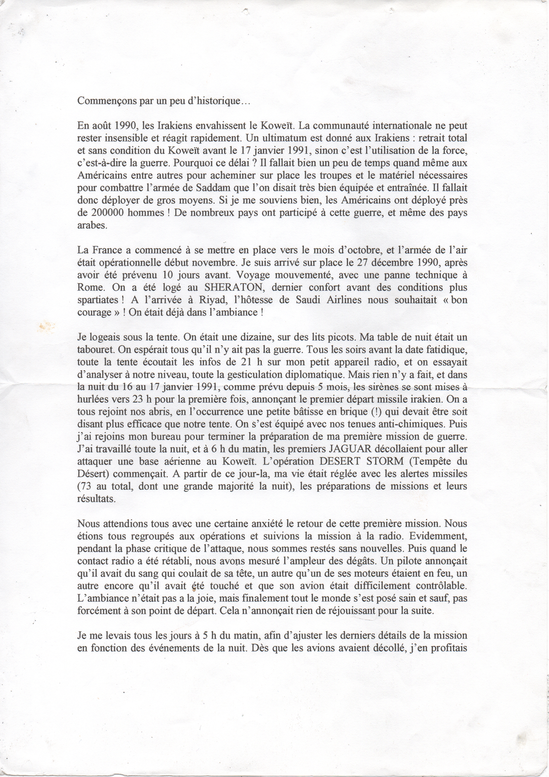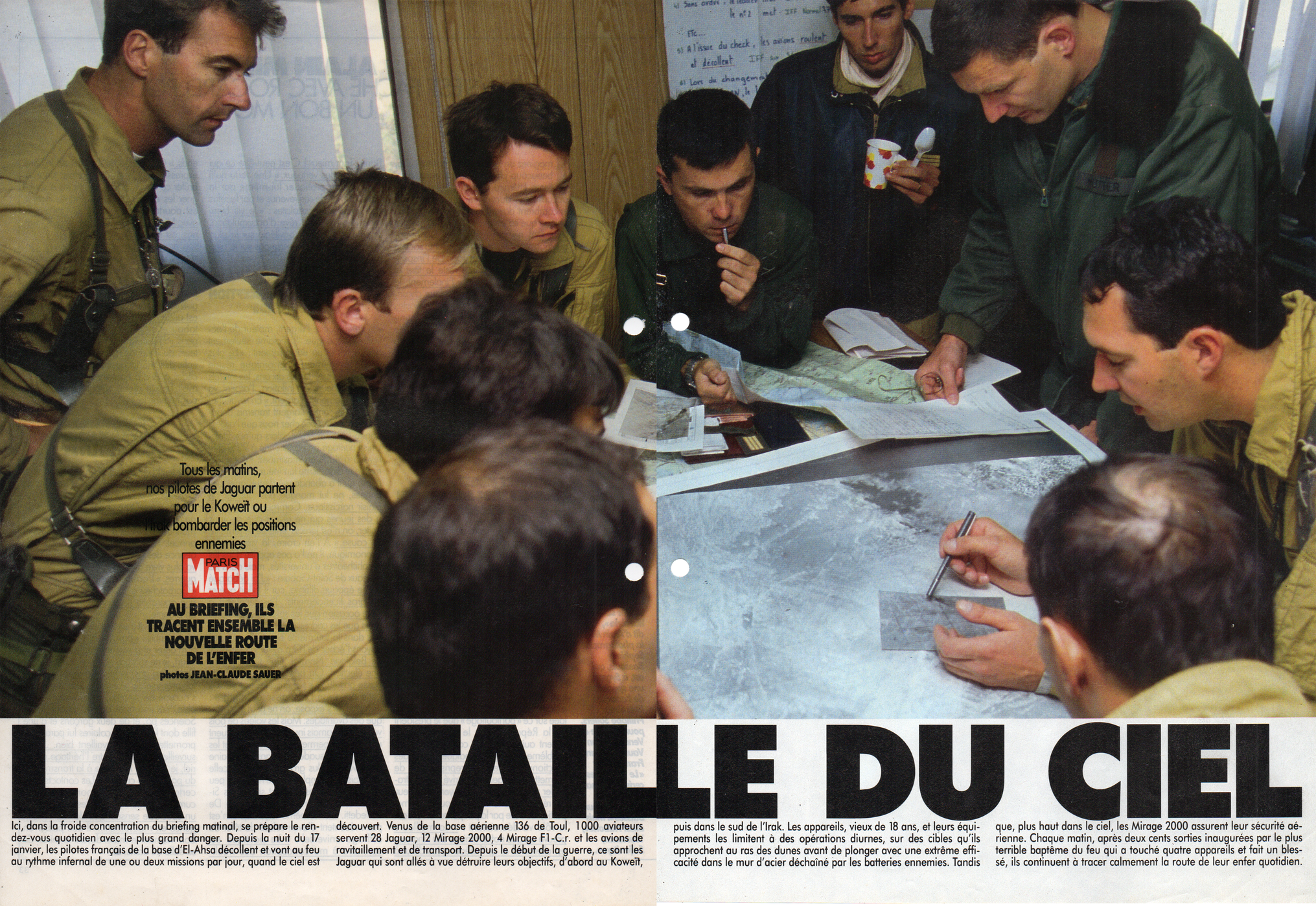 This document, a personal archive, is a report published in Paris Match magazine on February 7th 1991. My father is on the image, preparing reconnaissance tasks for fighter planes. This picture represents the first thing I remember of that conflict.