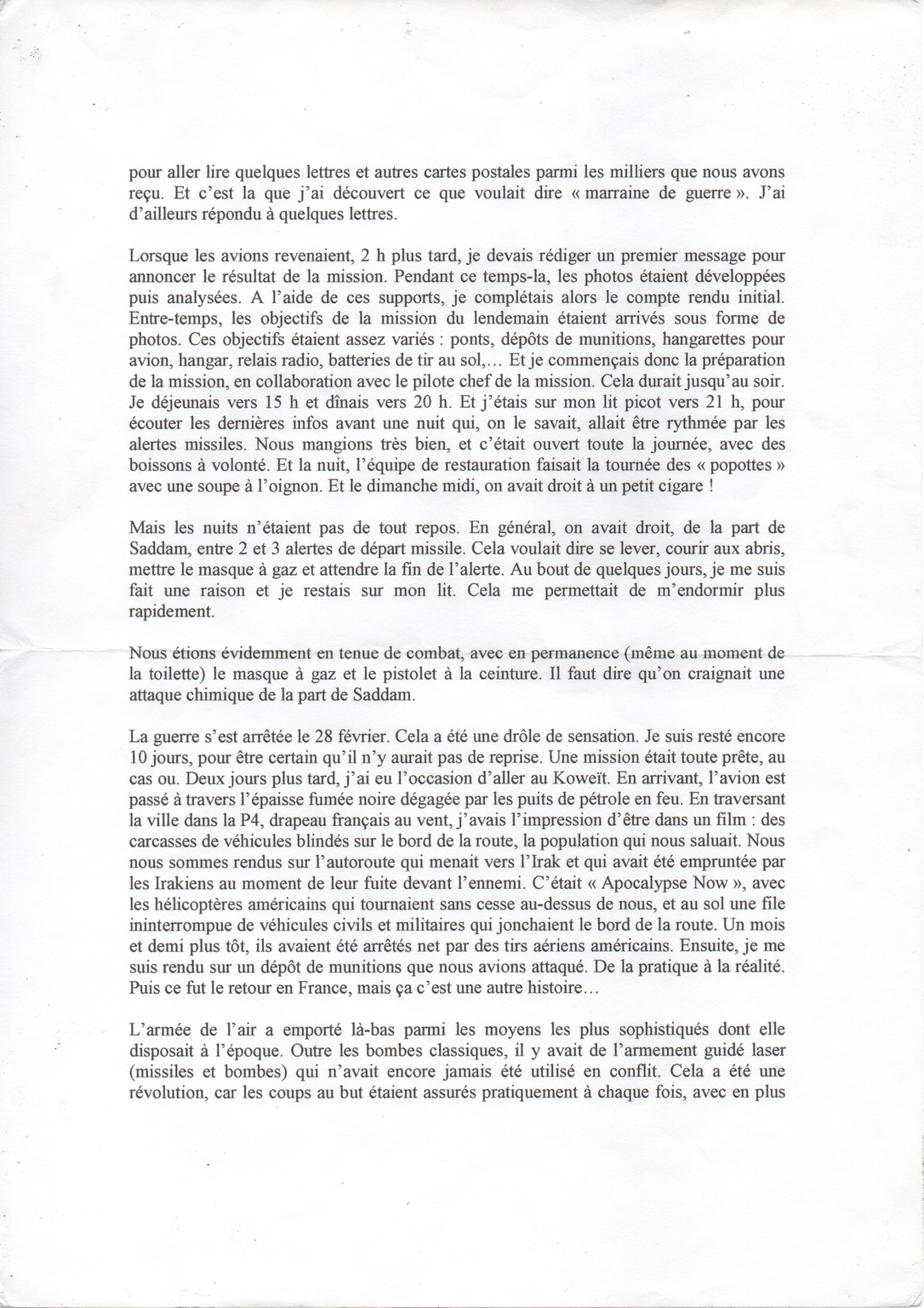 The text, in 3 pages, is a text written by my father, as a testimony. In 2009, when I discovered all the archives from the First Gulf War in my parent’s house, I asked him to write me a text to explain how he has lived the war, what was his everyday life, his work, his experience.