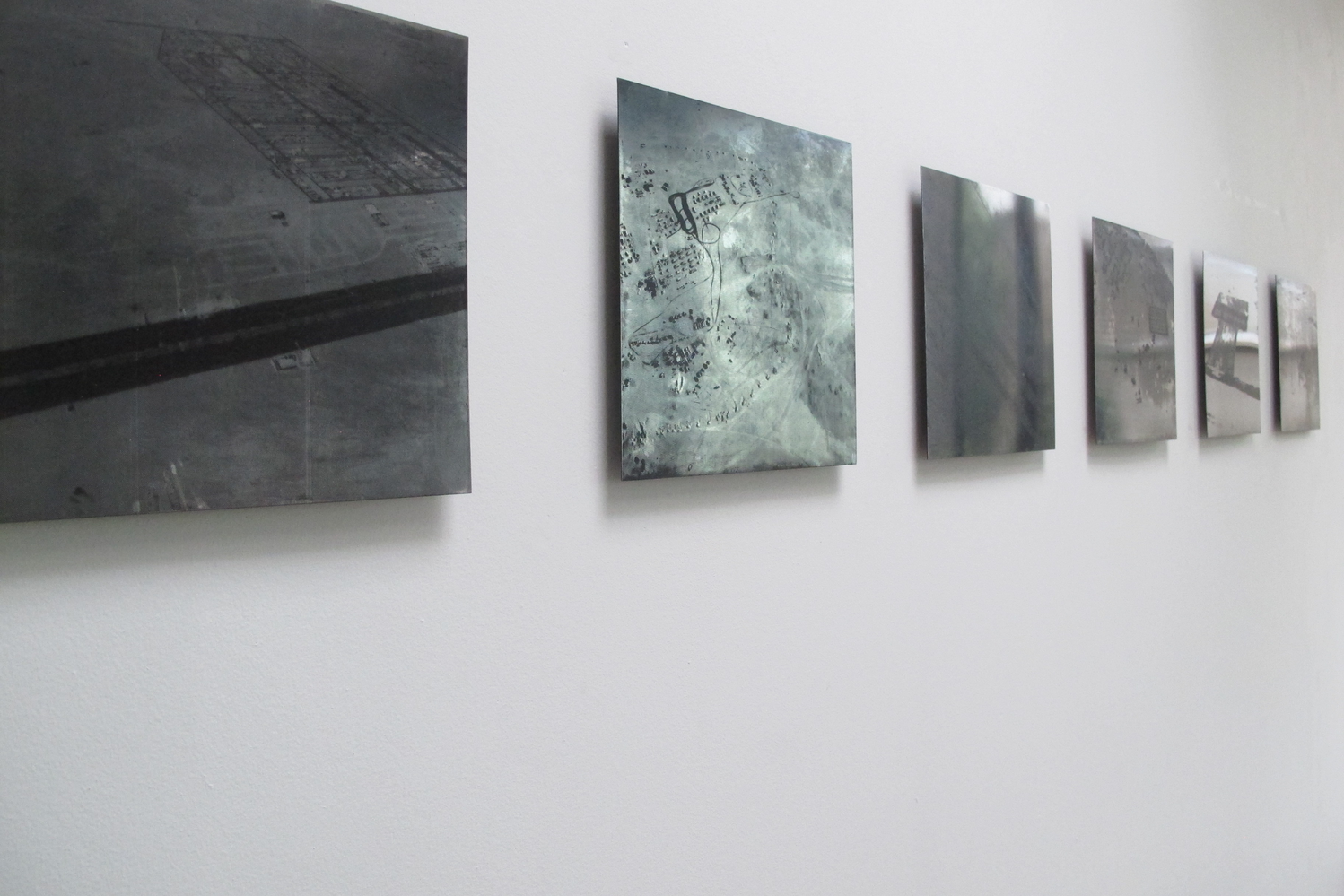 Personal military archives, serie of 9 photoengraving on polished steel, 30x30 cm, 2014. View from the exhibition "Reconnaissance" at Eté78 Gallery, Brussels, 2020.