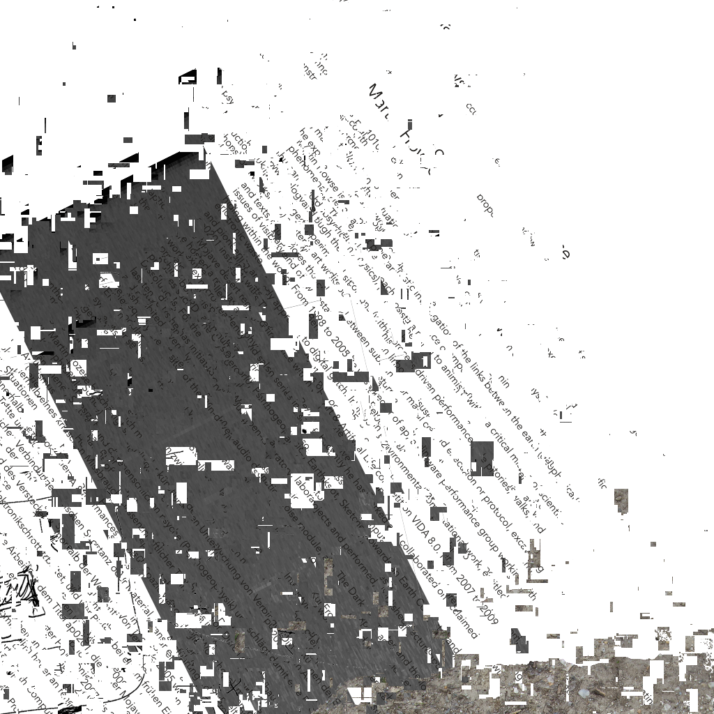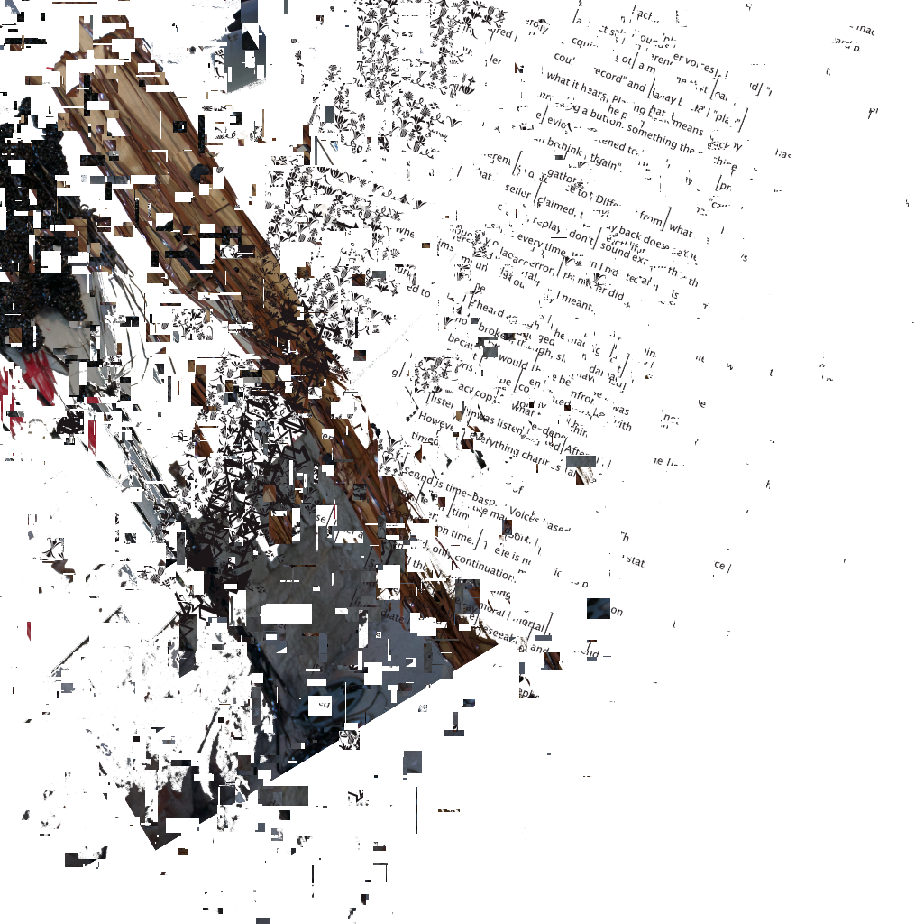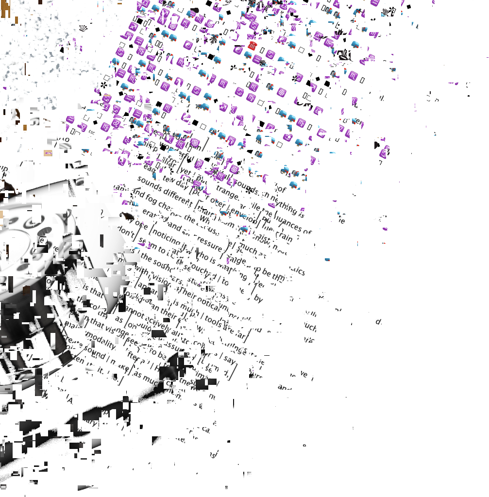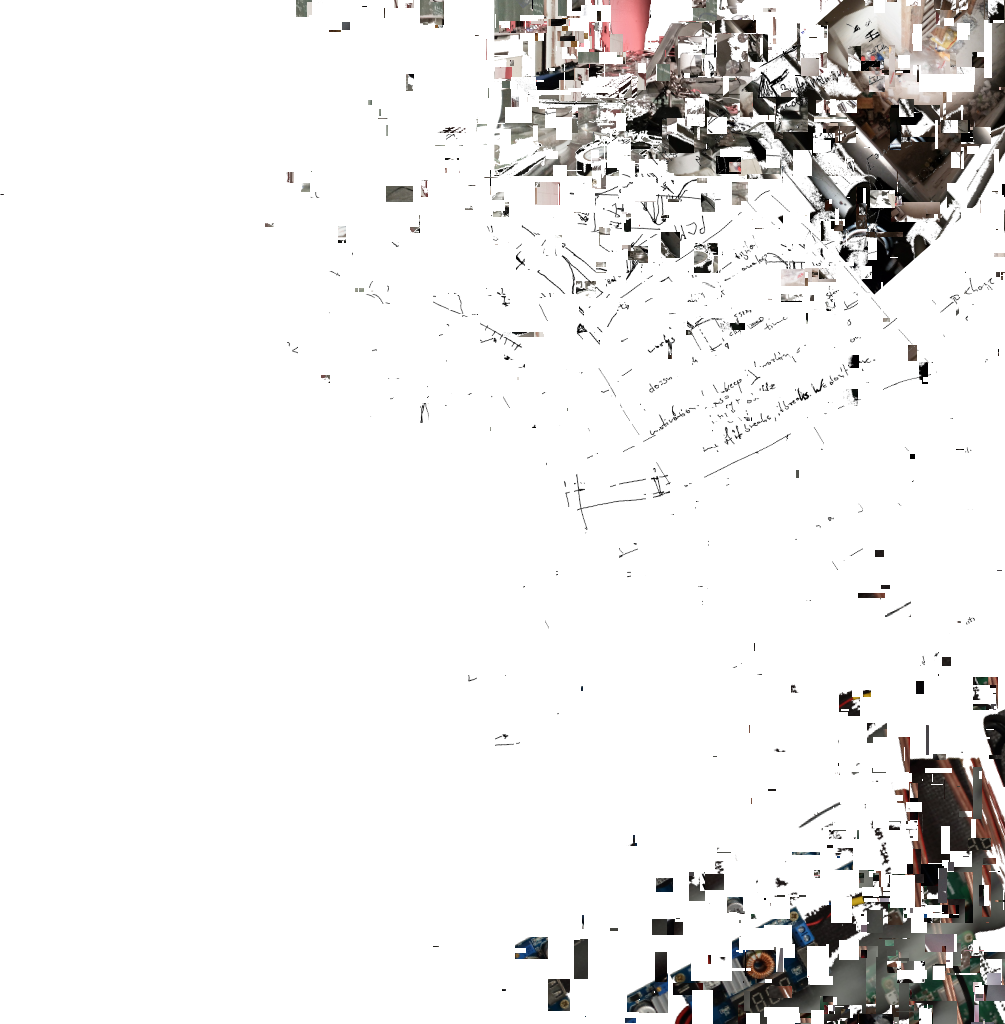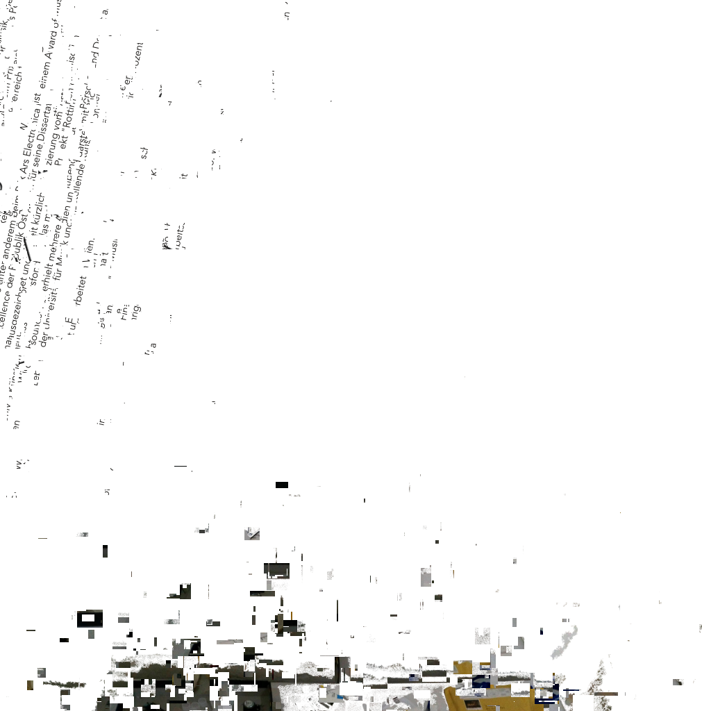 The processual sculpture "Fragments" is in permanent development and consists of artefacts of the "Rottings Sounds" project of artistic research*. Waste, things collected, things stored and things put aside, texts, pictures, data, sounds etc. are the basis of the shape-changing work. It is located at the Auditorium of Rotting Sounds. For this exposition, media representations of physical fragments have been arranged, then subjected to multiple stages of erosion processes specific to digital data. Object or exhibition, museum or archive, collection or documentation are moments of intrinsic research and decomposition, accompanying the process and resting in the distant but immediate eye of the virtual observer. *"Rotting Sounds – Embracing the temporal deterioration of digital audio" is a cooperation of the mdw – University of Music and Performing Arts Vienna, the University of Applied Arts Vienna and the Academy of Fine Arts Vienna. It is funded by the Austrian Science Fund (FWF) as project AR445-G24.