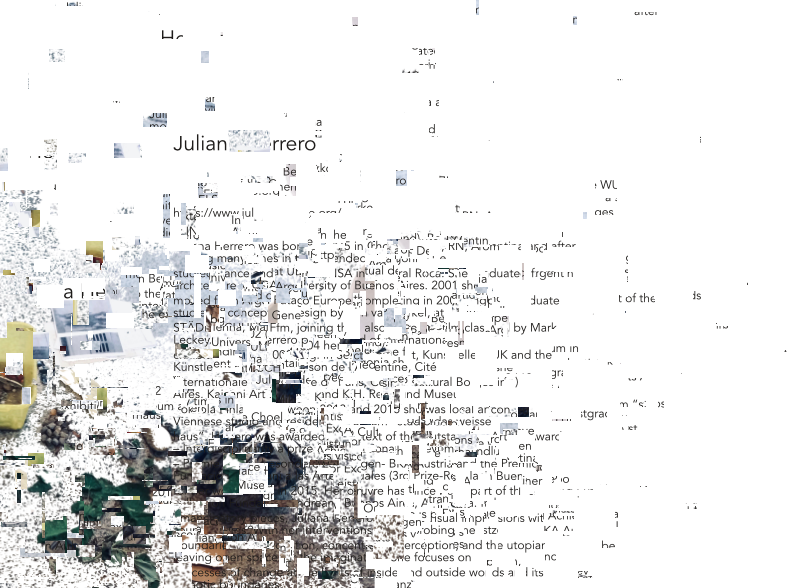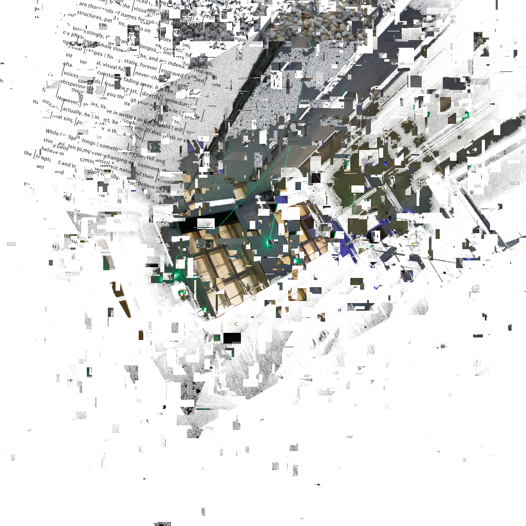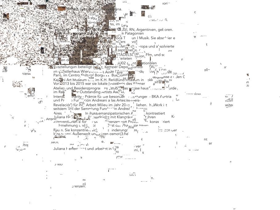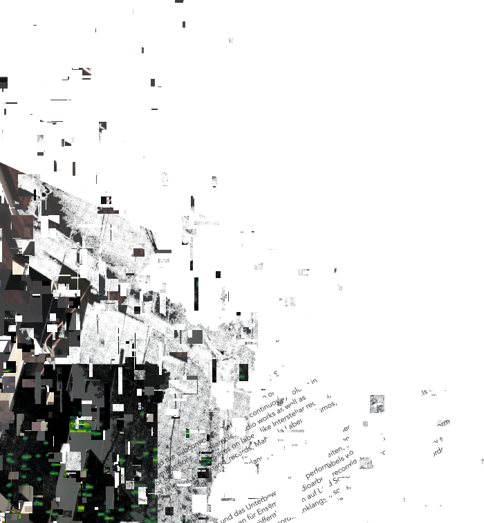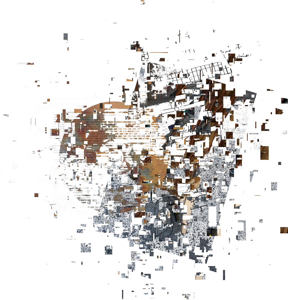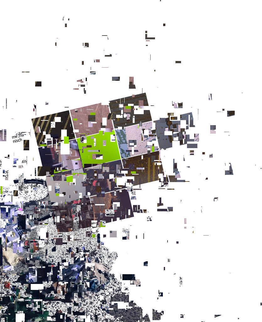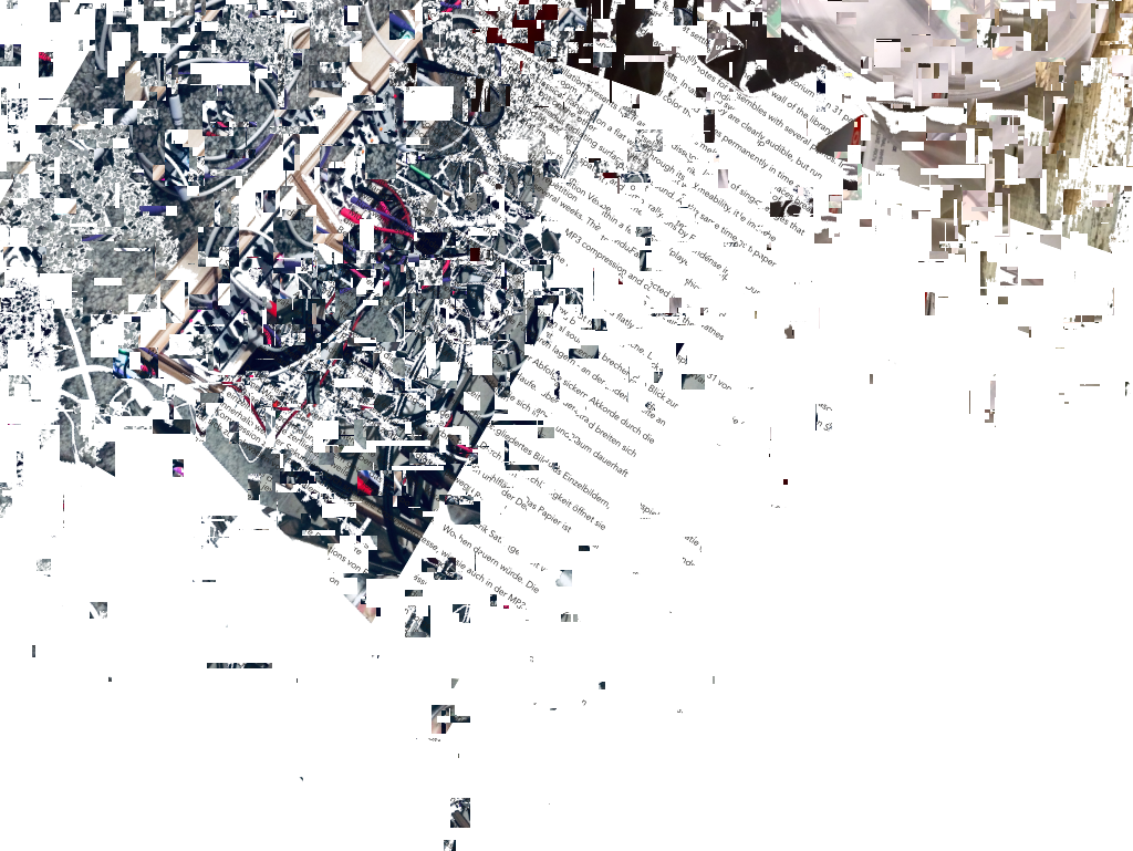 The processual sculpture "Fragments" is in permanent development and consists of artefacts of the "Rottings Sounds" project of artistic research*. Waste, things collected, things stored and things put aside, texts, pictures, data, sounds etc. are the basis of the shape-changing work. It is located at the Auditorium of Rotting Sounds. For this exposition, media representations of physical fragments have been arranged, then subjected to multiple stages of erosion processes specific to digital data. Object or exhibition, museum or archive, collection or documentation are moments of intrinsic research and decomposition, accompanying the process and resting in the distant but immediate eye of the virtual observer. *"Rotting Sounds – Embracing the temporal deterioration of digital audio" is a cooperation of the mdw – University of Music and Performing Arts Vienna, the University of Applied Arts Vienna and the Academy of Fine Arts Vienna. It is funded by the Austrian Science Fund (FWF) as project AR445-G24.