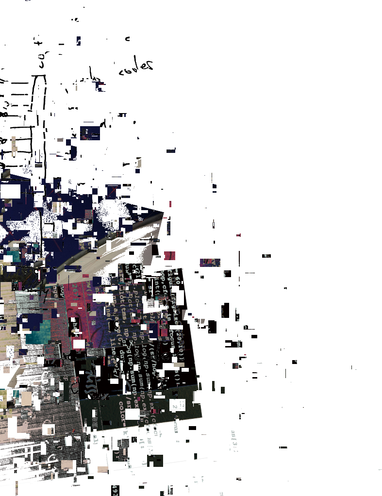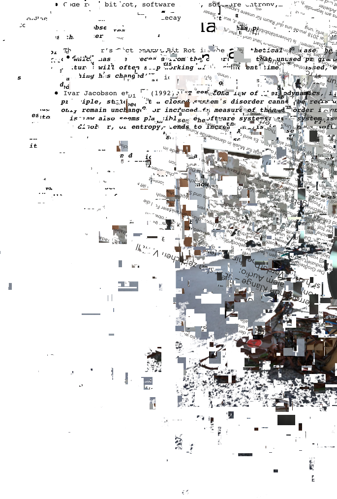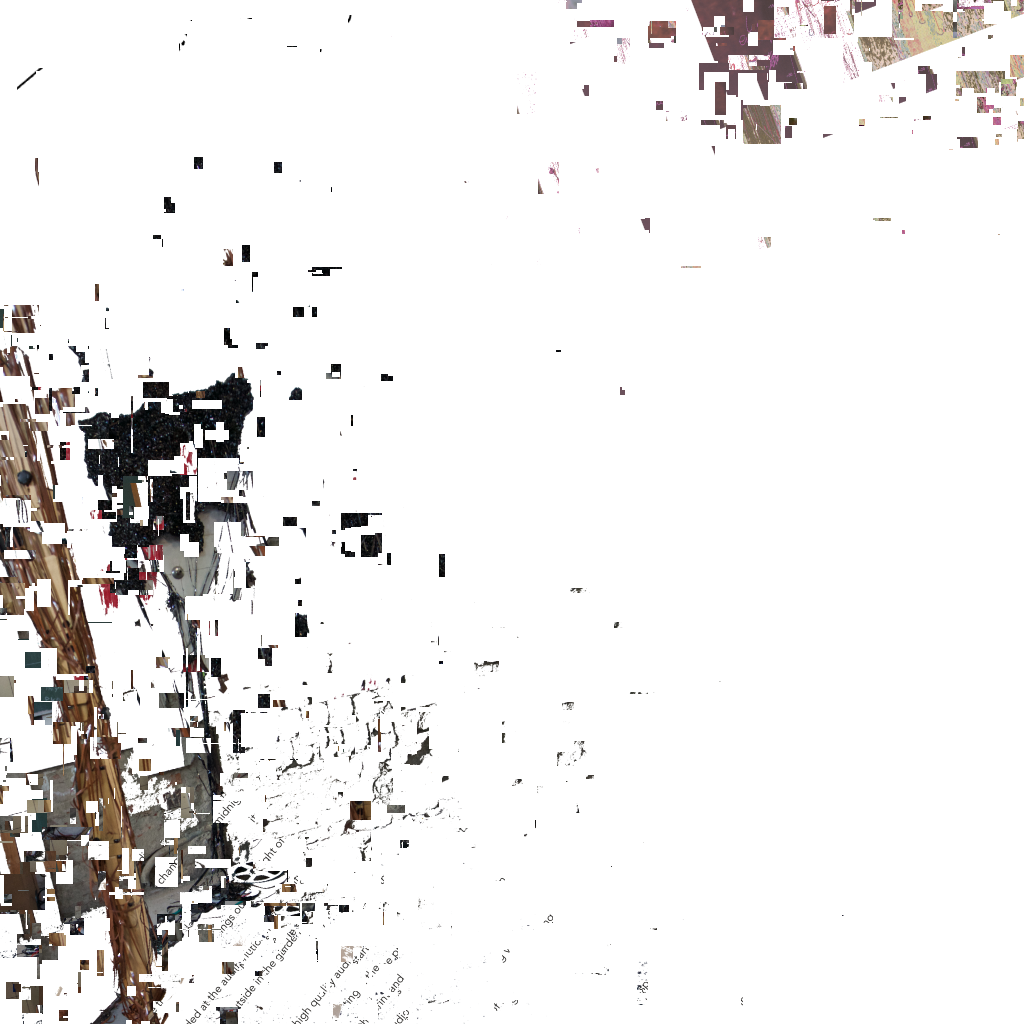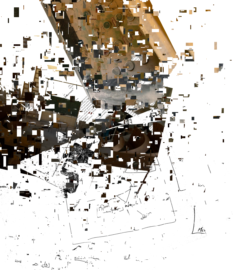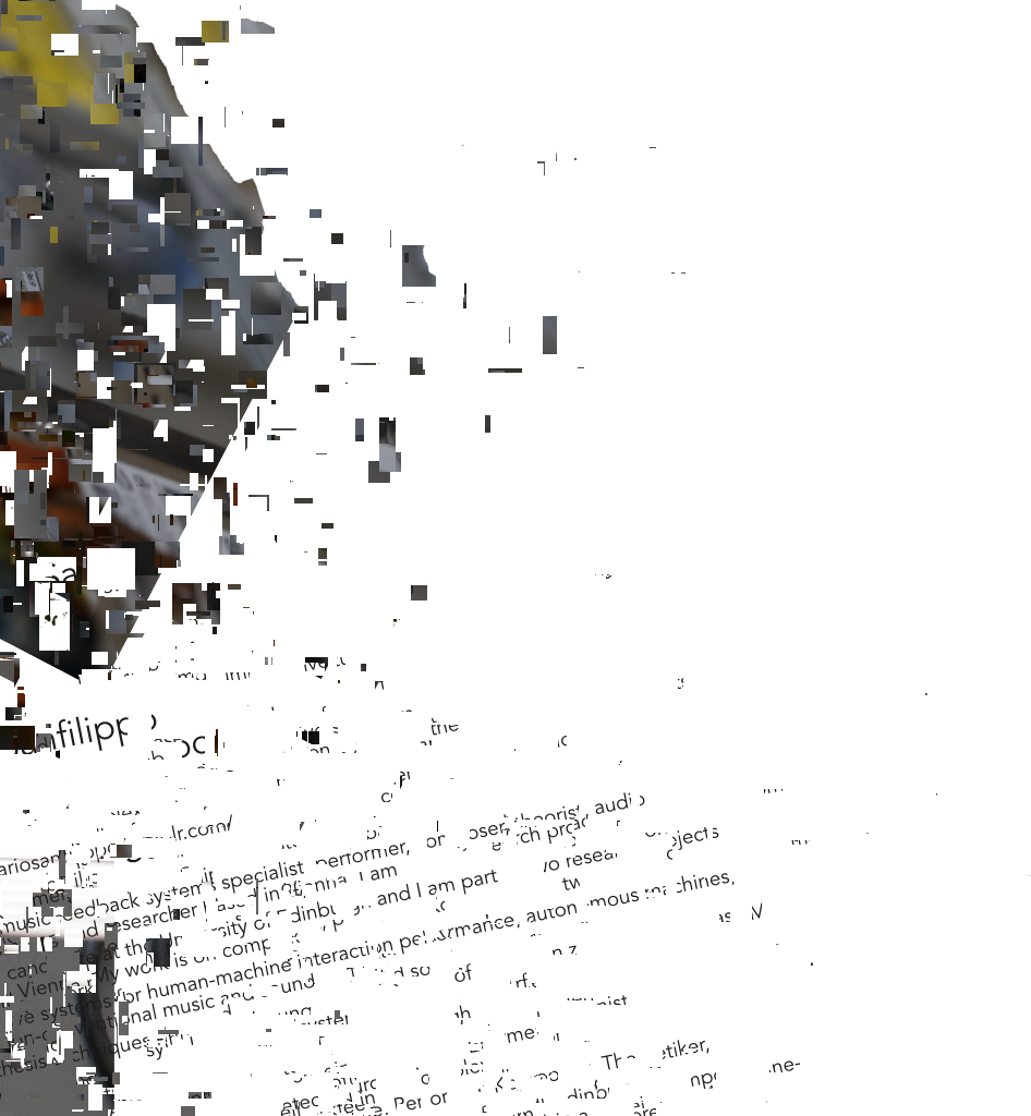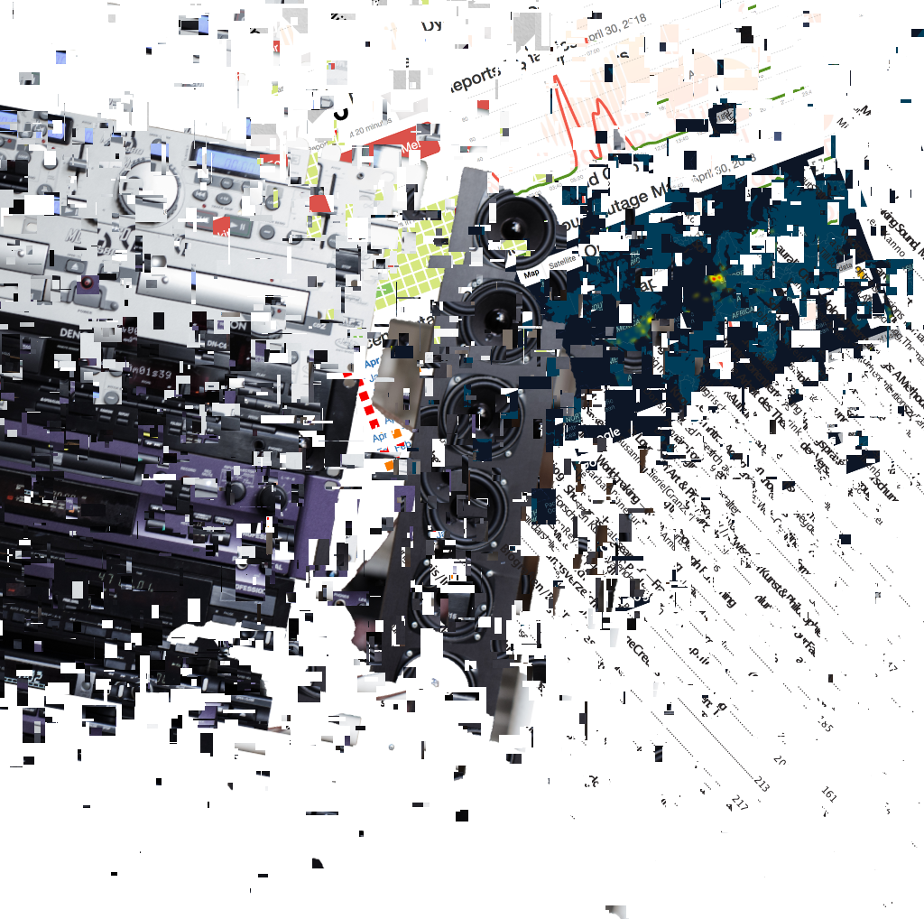 The processual sculpture "Fragments" is in permanent development and consists of artefacts of the "Rottings Sounds" project of artistic research*. Waste, things collected, things stored and things put aside, texts, pictures, data, sounds etc. are the basis of the shape-changing work. It is located at the Auditorium of Rotting Sounds. For this exposition, media representations of physical fragments have been arranged, then subjected to multiple stages of erosion processes specific to digital data. Object or exhibition, museum or archive, collection or documentation are moments of intrinsic research and decomposition, accompanying the process and resting in the distant but immediate eye of the virtual observer. *"Rotting Sounds – Embracing the temporal deterioration of digital audio" is a cooperation of the mdw – University of Music and Performing Arts Vienna, the University of Applied Arts Vienna and the Academy of Fine Arts Vienna. It is funded by the Austrian Science Fund (FWF) as project AR445-G24.