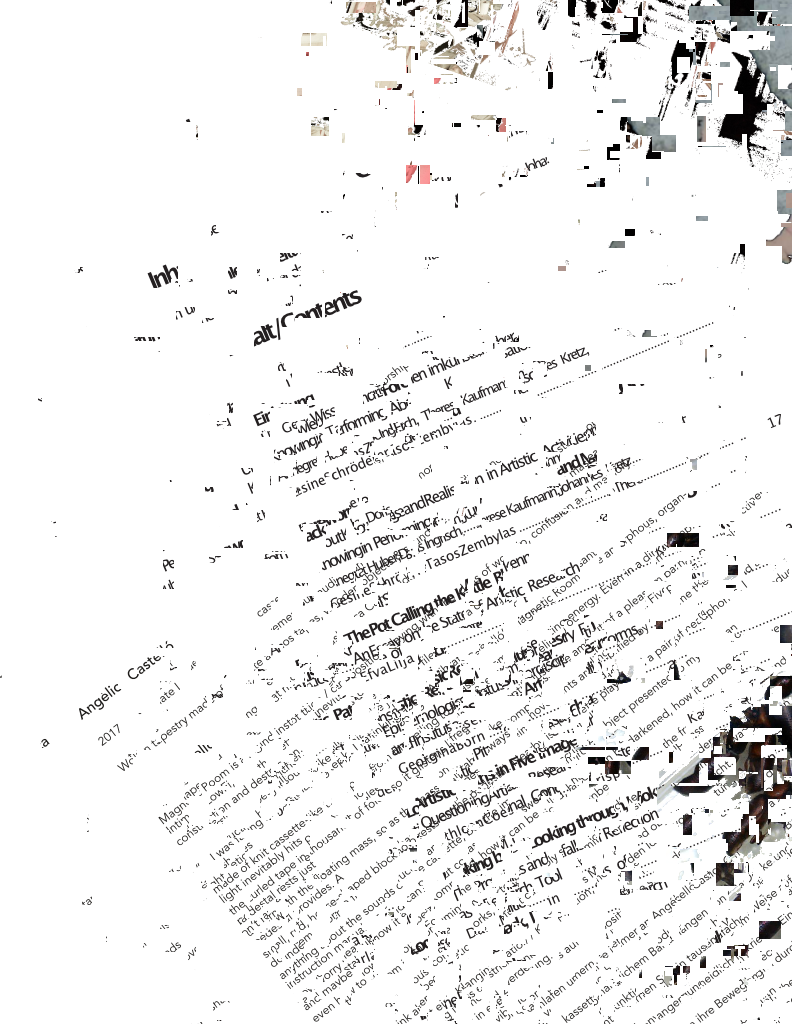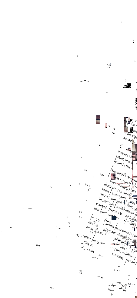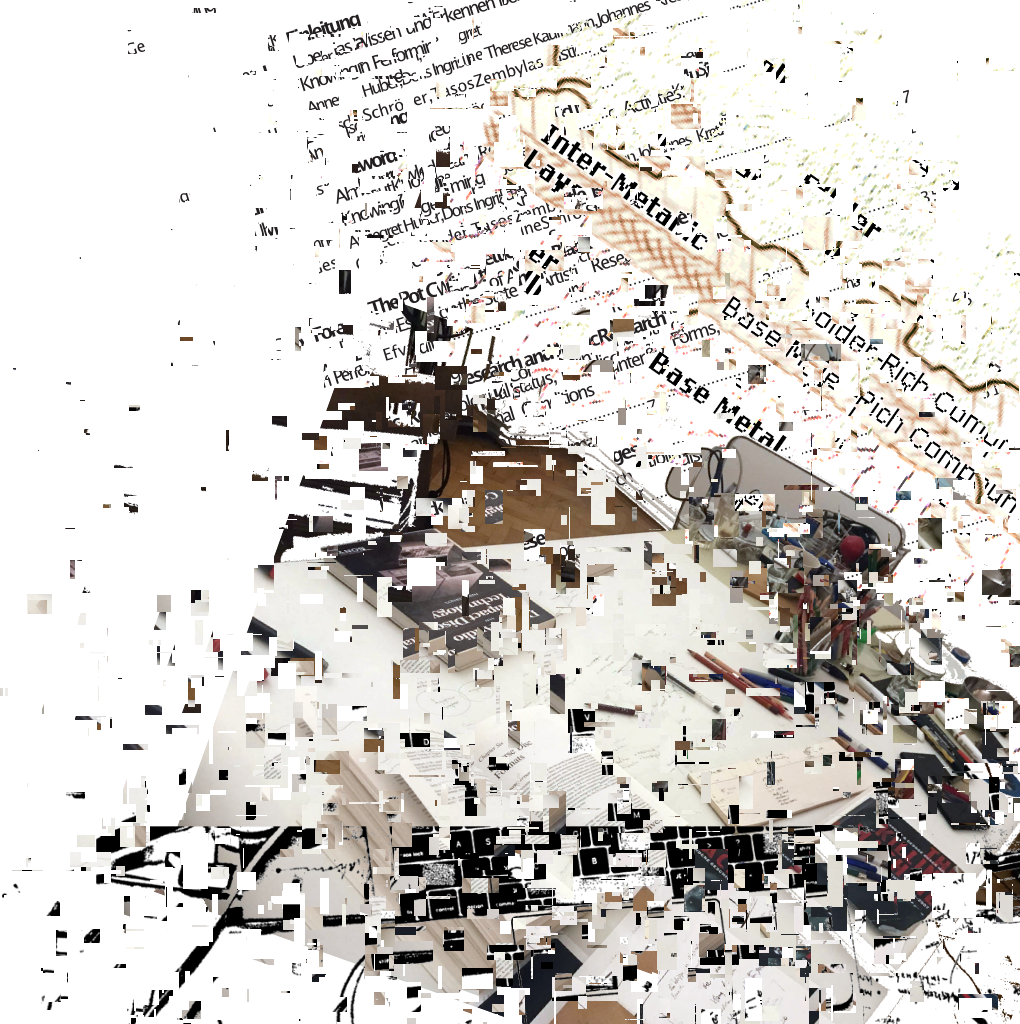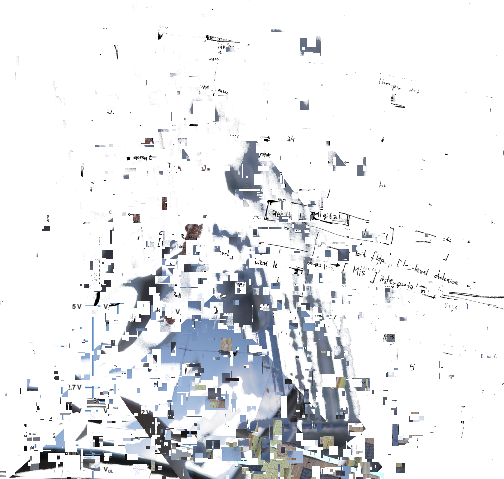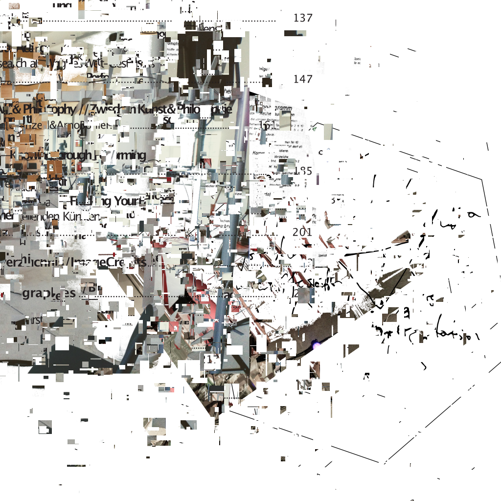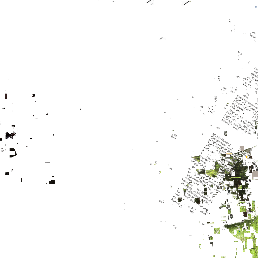 The processual sculpture "Fragments" is in permanent development and consists of artefacts of the "Rottings Sounds" project of artistic research*. Waste, things collected, things stored and things put aside, texts, pictures, data, sounds etc. are the basis of the shape-changing work. It is located at the Auditorium of Rotting Sounds. For this exposition, media representations of physical fragments have been arranged, then subjected to multiple stages of erosion processes specific to digital data. Object or exhibition, museum or archive, collection or documentation are moments of intrinsic research and decomposition, accompanying the process and resting in the distant but immediate eye of the virtual observer. *"Rotting Sounds – Embracing the temporal deterioration of digital audio" is a cooperation of the mdw – University of Music and Performing Arts Vienna, the University of Applied Arts Vienna and the Academy of Fine Arts Vienna. It is funded by the Austrian Science Fund (FWF) as project AR445-G24.