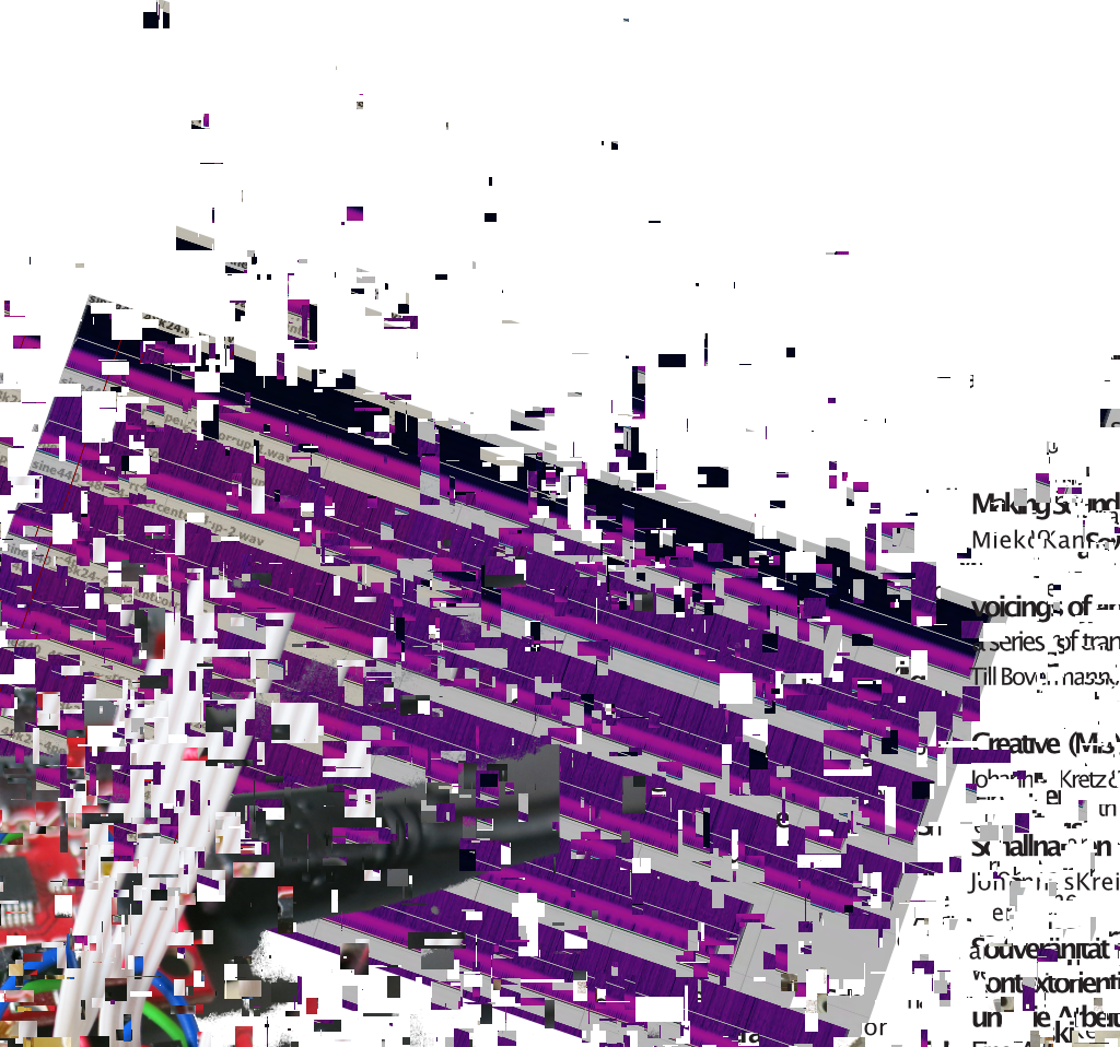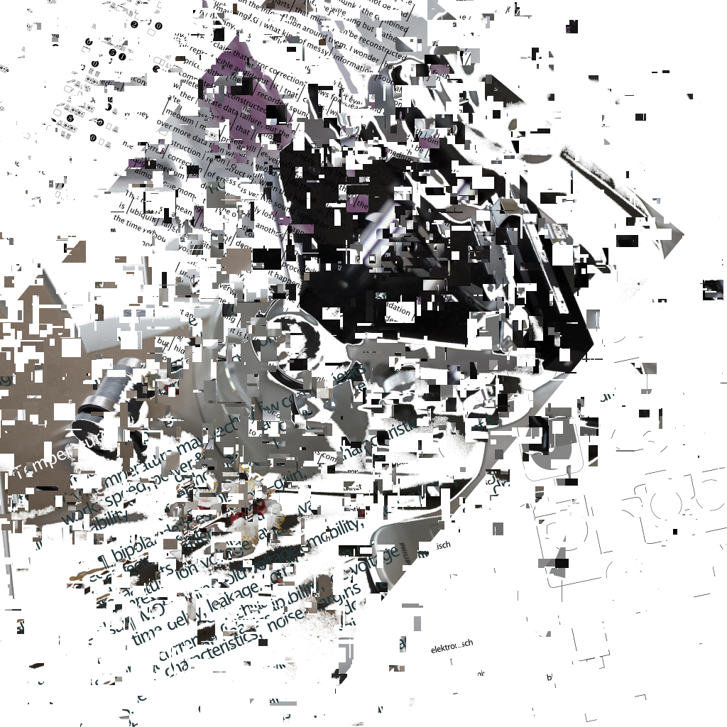 The processual sculpture "Fragments" is in permanent development and consists of artefacts of the "Rottings Sounds" project of artistic research*. Waste, things collected, things stored and things put aside, texts, pictures, data, sounds etc. are the basis of the shape-changing work. It is located at the Auditorium of Rotting Sounds. For this exposition, media representations of physical fragments have been arranged, then subjected to multiple stages of erosion processes specific to digital data. Object or exhibition, museum or archive, collection or documentation are moments of intrinsic research and decomposition, accompanying the process and resting in the distant but immediate eye of the virtual observer. *"Rotting Sounds – Embracing the temporal deterioration of digital audio" is a cooperation of the mdw – University of Music and Performing Arts Vienna, the University of Applied Arts Vienna and the Academy of Fine Arts Vienna. It is funded by the Austrian Science Fund (FWF) as project AR445-G24.