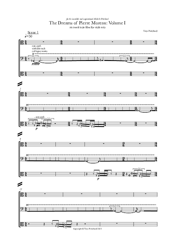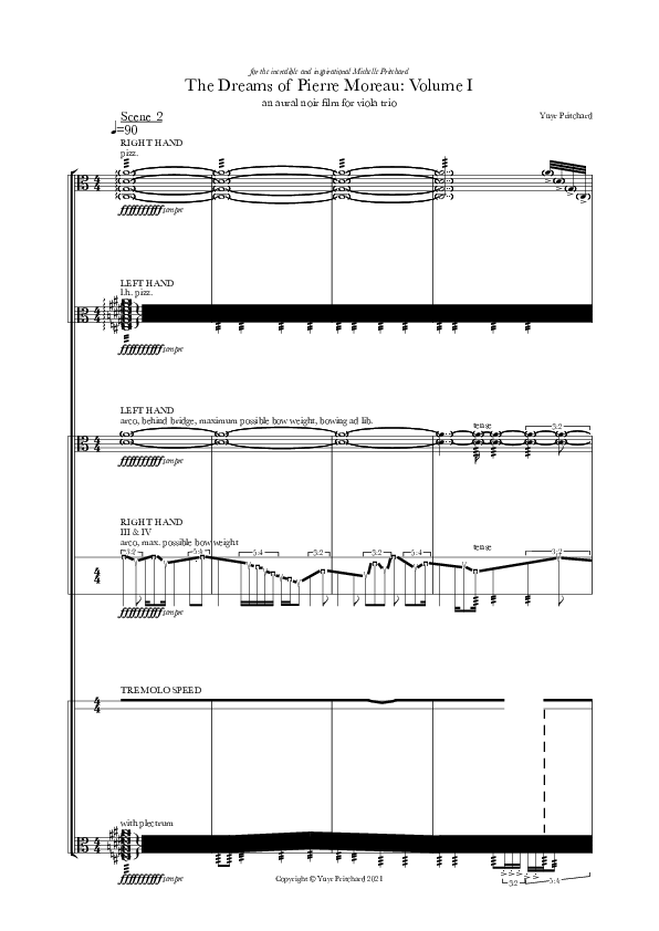 Originally, when Pritchard offered to compose a piece for me we discussed the concept of a viola duo or trio work, tango based on the style of Bach. A work for three violas was decided upon.