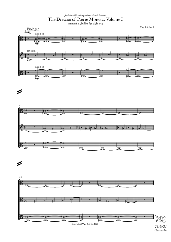 For this composition, I will be performing the 1st viola part of the trio. (Ynyr Pritchard viola 2; Ásdís Valdímarsdottír- viola 3)