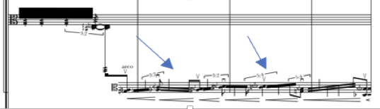 This process has already started as some aspects of Pritchard’s writing needed clarifying- for example to articulate through the notated beaming in the music? In the example below there are stems marked through the horizontal line.