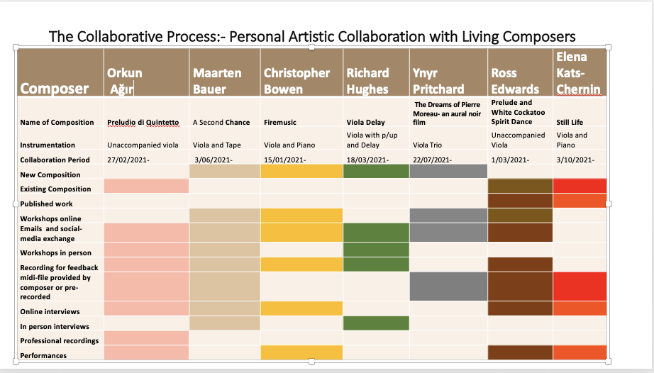 Over the course of my Research and in the previous chapters I have set out to identify the roles and responsibilities of the violist when collaborating with living composers.