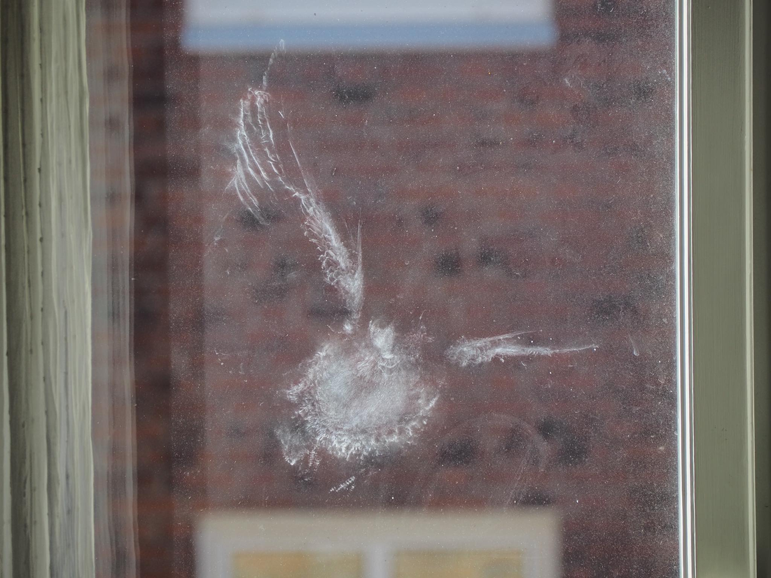 When you reach the window, you see that the bird has left a graphic imprint on the glass pane.