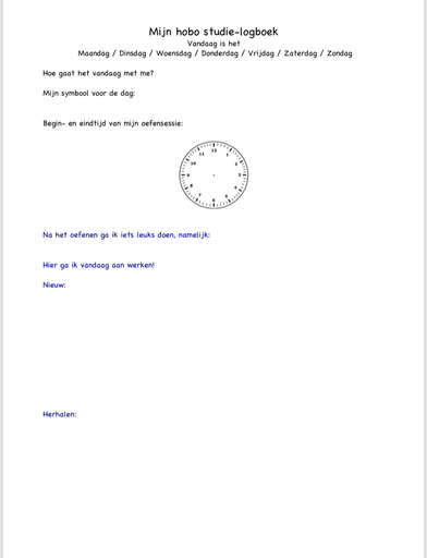 In combination with the Executive learning functions sheet students can plan their practice sessions.