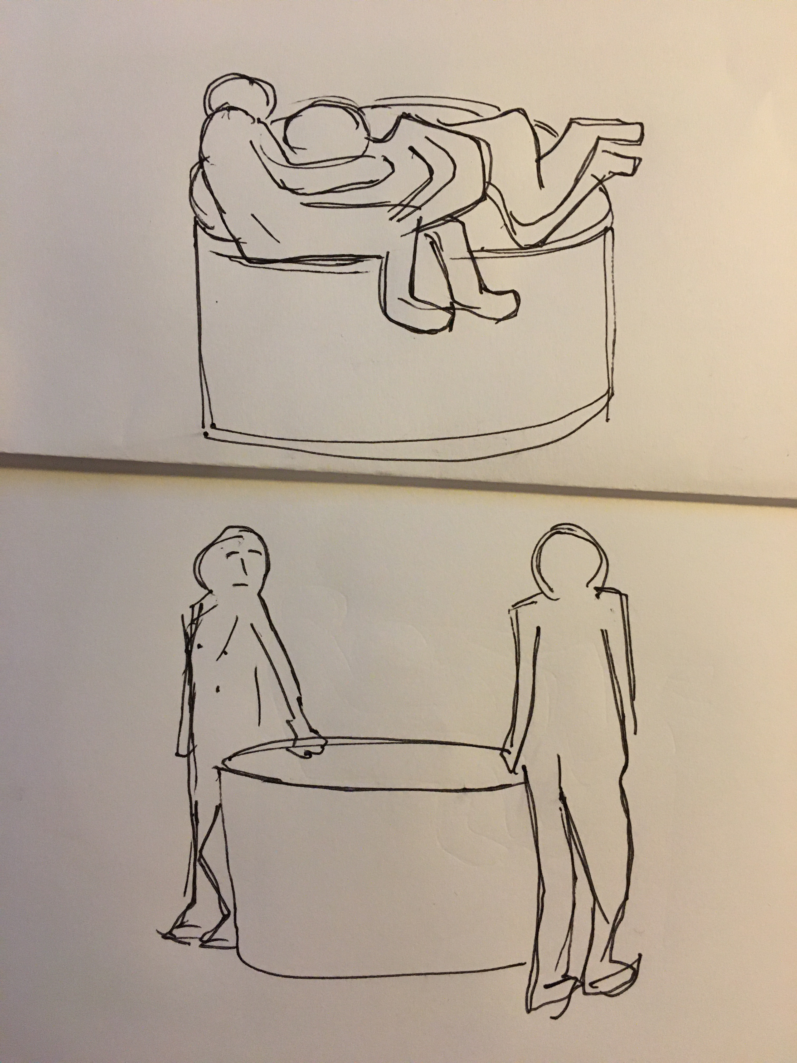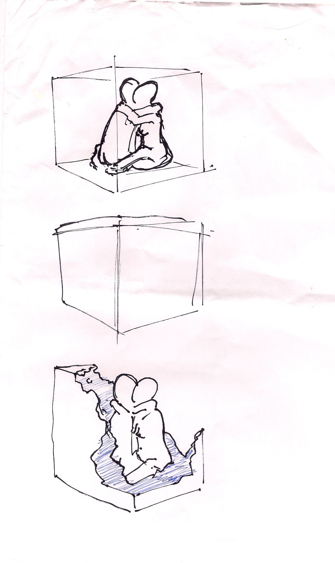 I quickly realized that I wasn’t pleased with the narrative I had considered in my twenties and that I had actually thought of exploring in the preliminary artistic research project: It was an overly romantic and surreal story of a young couple wishing to preserve their love for eternity and therefore casting themselves as sculptures inspired by the victims of Pompeii (a suicide leading to eternity). My thought had been to make a film about the young couple building this weird structure in which they’d be cast, write a final letter or something left by them, and then sculpturally make an actual cast of them (which could be seen sort of a pay-off to use a dramaturgical term), each media presenting a fragment of the story for the audience to interpret.