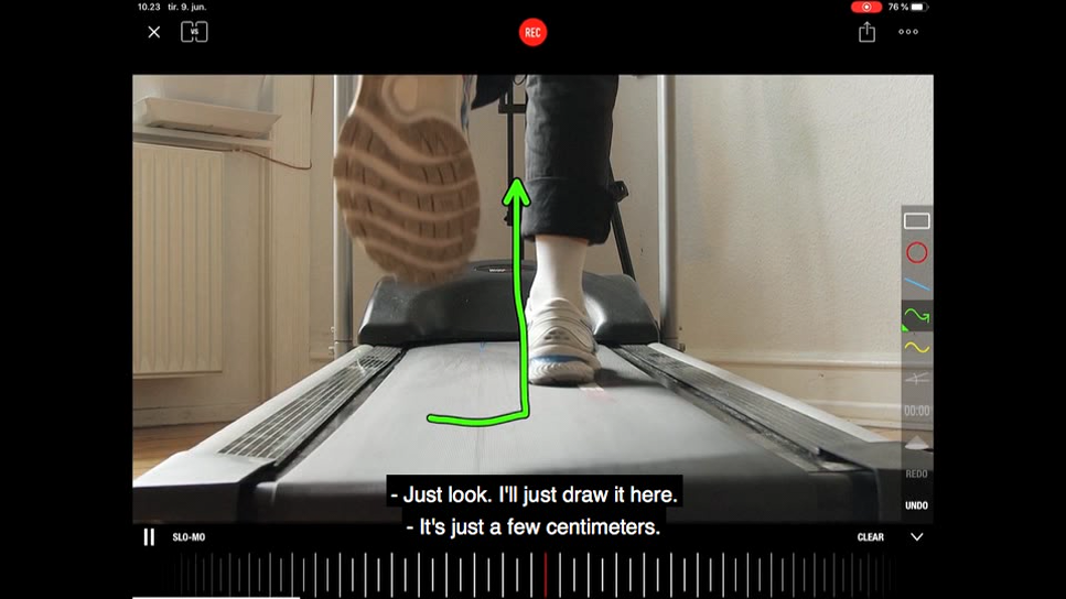 It was great fun working with actors Aske Bang and Minna Flyvholm Tode on the short film about the young man helping a costumer buying running shoes. I named him Norbert as the archeologist in Jensen’s novel. Before rehearsing, I’d been at a shoe store, tried on running shoes and discussed how the employees filmed the costumer’s running on a treadmill using a specific app on an iPad. Aske and Minna visited me twice. First, I rehearsed with them without any recording devices. The second time, we simply shot the scene from the fixed perspective one would shoot a running test, letting the characters walk off screen, rewind and watch the video and discuss it, a technique I had thought interesting as it relies on an intradiegetic camera turning into a intradiegetic viewing device for the characters (being able to rewind, slow, or stop) in visual alignment with the perceiving audience.