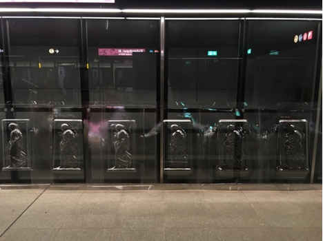 We made six copies which I had some difficulty bringing home in the metro. On the way home, I took some pictures of the plastic reliefs lined up in the subway station near the academy: in a way representing Gradiva as she boards a train in Copenhagen anno 2020 instead of stepping on the stones leading over the roman streets in Pompeii. I thought it was quite fun and interesting until a conductor firmly asked Gradiva – or maybe it was me – to leave.