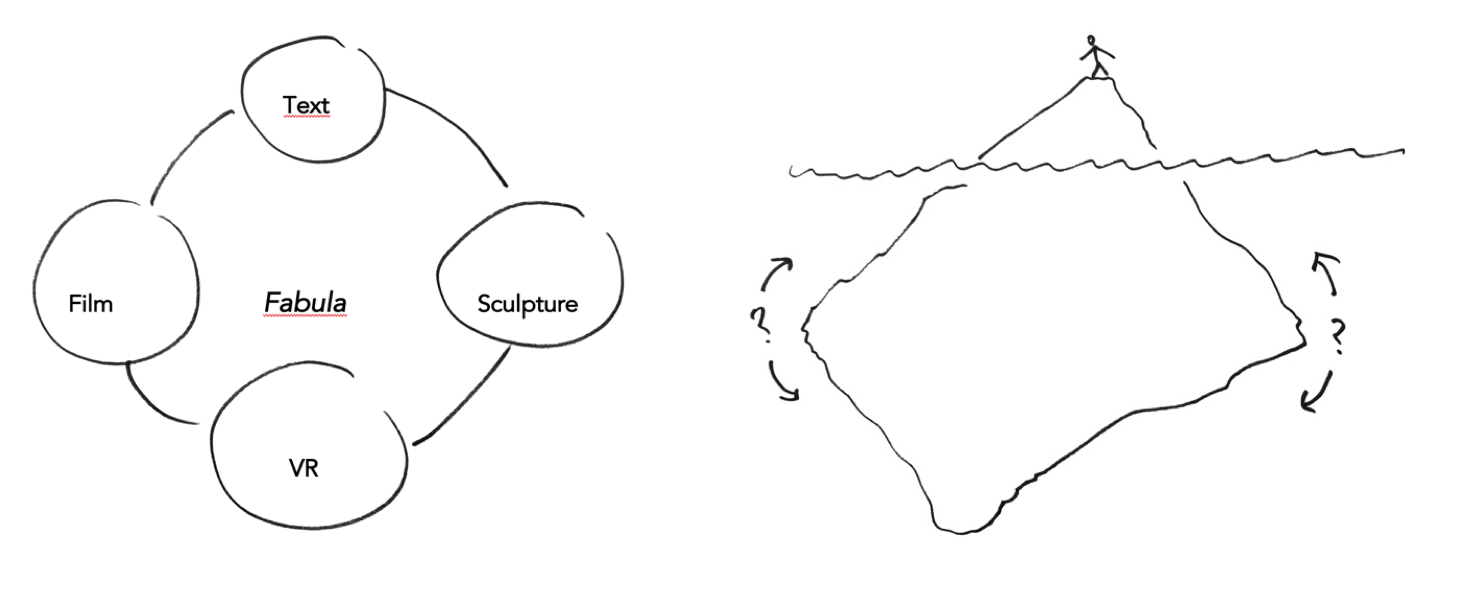 Through different collaborations during the initial phase of the artistic research project, I’ve had the chance to produce a prototype of a transmedia artwork involving film, sculpture, virtual reality, and literary text, make an audience test of it, and write this reflection.