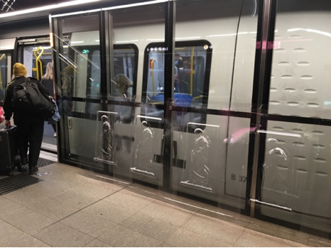 We made six copies which I had some difficulty bringing home in the metro. On the way home, I took some pictures of the plastic reliefs lined up in the subway station near the academy: in a way representing Gradiva as she boards a train in Copenhagen anno 2020 instead of stepping on the stones leading over the roman streets in Pompeii. I thought it was quite fun and interesting until a conductor firmly asked Gradiva – or maybe it was me – to leave.