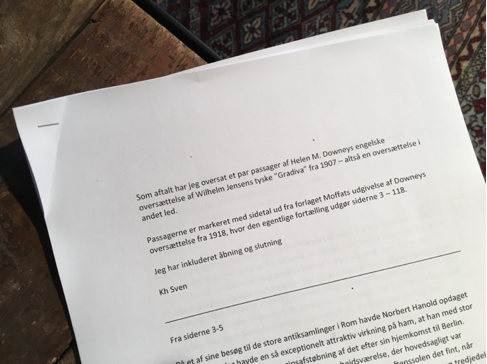 The literary part was translated passages of Wilhelm Jensen’s book including a short description telling the reader it was a Danish translation of an English translation (a translation in 2nd degree), printed on 5 A4-pages and stapled together in the corner.