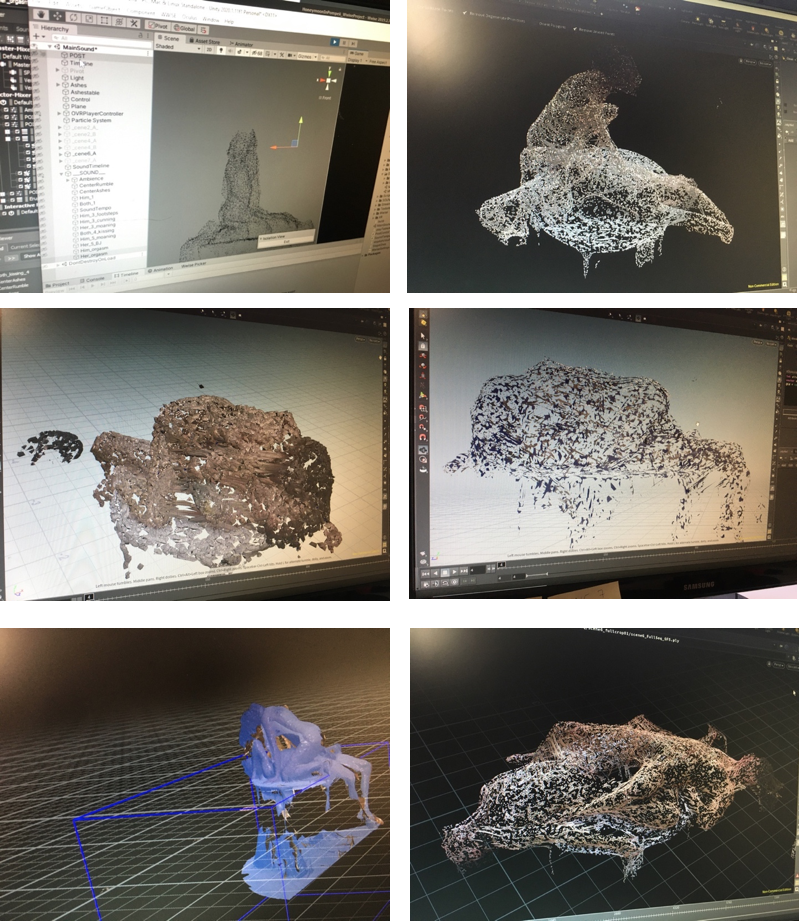Through different collaborations during the initial phase of the artistic research project, I’ve had the chance to produce a prototype of a transmedia artwork involving film, sculpture, virtual reality, and literary text, make an audience test of it, and write this reflection.