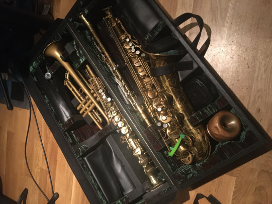 Ex. 2 is another excerpt from the same piece mentioned above. It exemplifies related yet distinct samples that carry different contexts, such as the samples from Kjærgaard's solo piano album 'Concrescence'. The bleed from Snekkestad's acoustic saxophone can be heard as sustained notes when he triggers piano samples from 'Concrescence'. Meanwhile, Toop's bone conduction microphone is audible, (re)playing samples on drum skins. Once again, the listening experience is transcribed, mapping out new territories and laying the foundation for further explorations.
