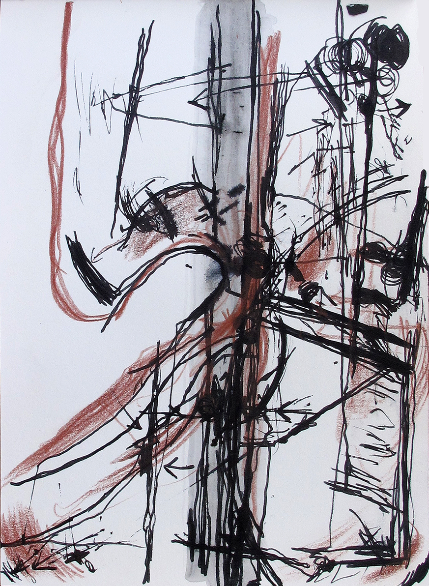 While I am not unduly conscious of the question of code in my visual practice, the question nonetheless underpins an approach that cross-references between analogue drawing and digital modes of recording, the latter of which exert their influence on the analogue component. When I transcribe my speech in a manner that preserves the character of its enunciation as much as possible, such grammatical coding may have additional impact on how the drawings are received, encouraging their viewer to integrate the question of reading with seeing. The oscillation between visual and linguistic means of consideration of perception is therefore constitutive of my current practice, while within its drawing basis is a tension between analogue drawing and a more expansive interpretation of drawing to include audio-visual recording.