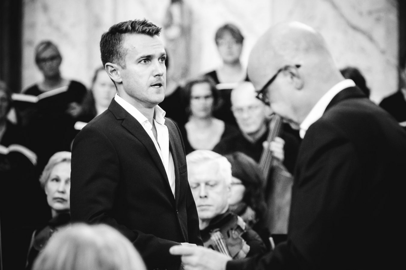 M: Jeg har opplevd at jeg tar på menigheten med stemmen. Det kan kanskje høres utflytende ut, men tror likevel det er noe i den erfaringen. Med det mener jeg ikke at jeg holder menigheten som en unge, men at jeg i handling og ord gjør det menneskelige tydelig for de som er tilstede: Ordene, lydene, bevegelsene er der nærmest fra før, som Ordo [1], og så ville de likevel ikke vært der uten meg, kroppen min, stemmen min – som på et vis tvinges på menigheten, når det gjøres med litt punch.